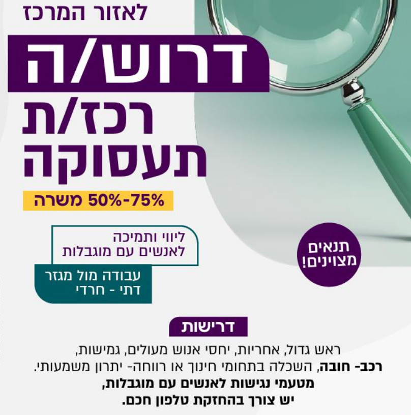 דרוש/ה רכז/ת תעסוקה לאזור המרכז