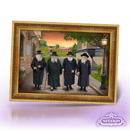 תמונה בסגנון של התמונות האלו עם שושלת אדמו"רים אחרת(חסידות מודז'יץ), שיראה בסגנון של התמונות(כל האדמו"רים יושבים אחד ליד השני או הולכים ברחוב או בתוך בית או שהאדמו"רים הקודמים יושבים והאדמו"ר הנוכחי נכנס בדלת) אבל משהו אחר בסגנון אחר (נ.ב. חשוב מאוד שיראה כזה בין ציור לתמונה כמו בכל התמונות האלו, והפרצופים מודבקים) (תקציב 1000 ש"ח)
