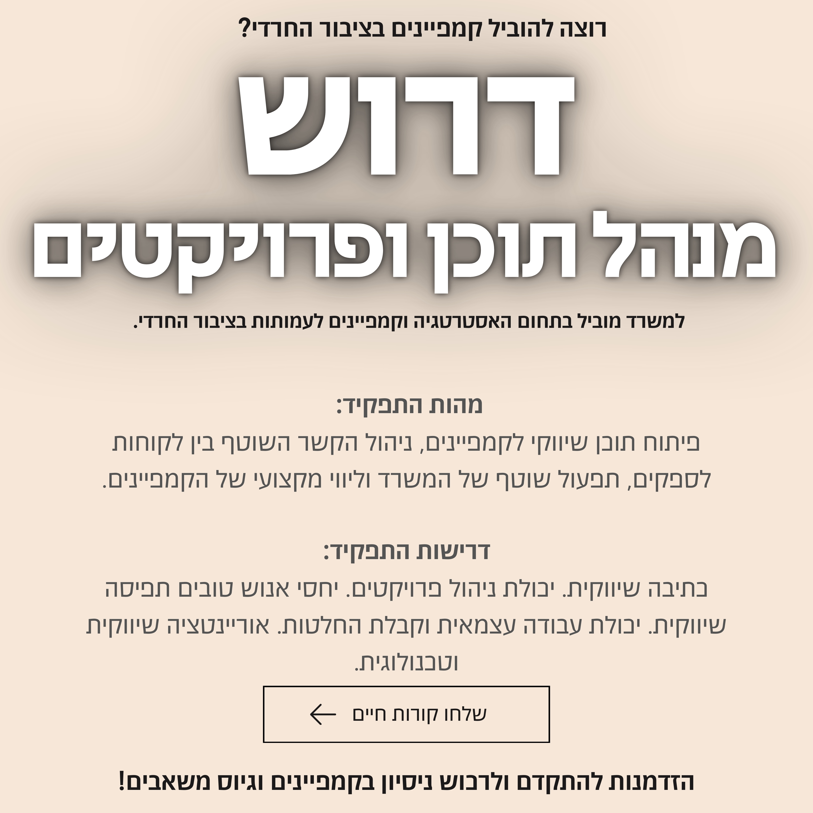 רוצה להוביל קמפיינים בציבור החרדי?