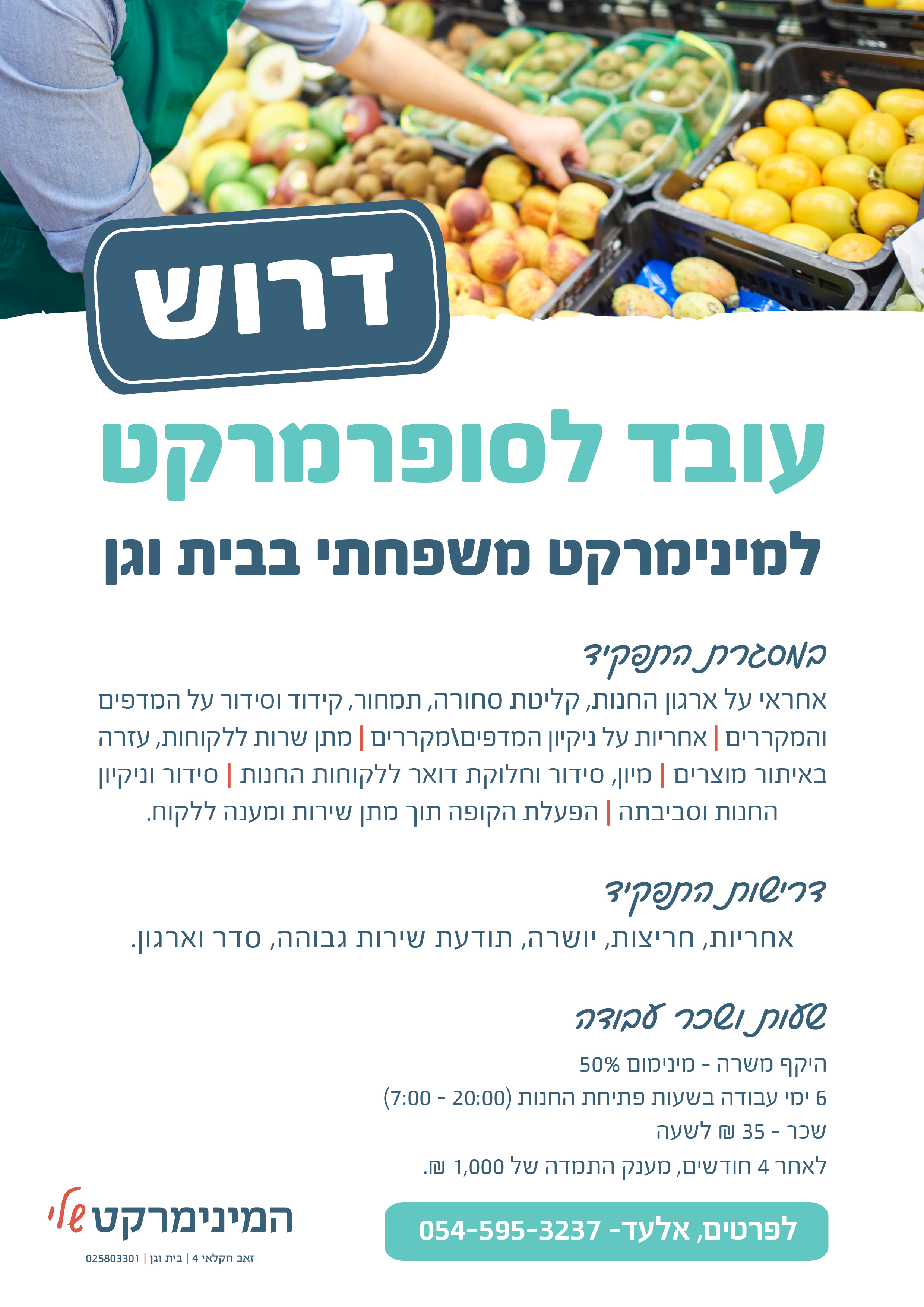 דרוש עובד למינימרקט משפחתי בבית וגן