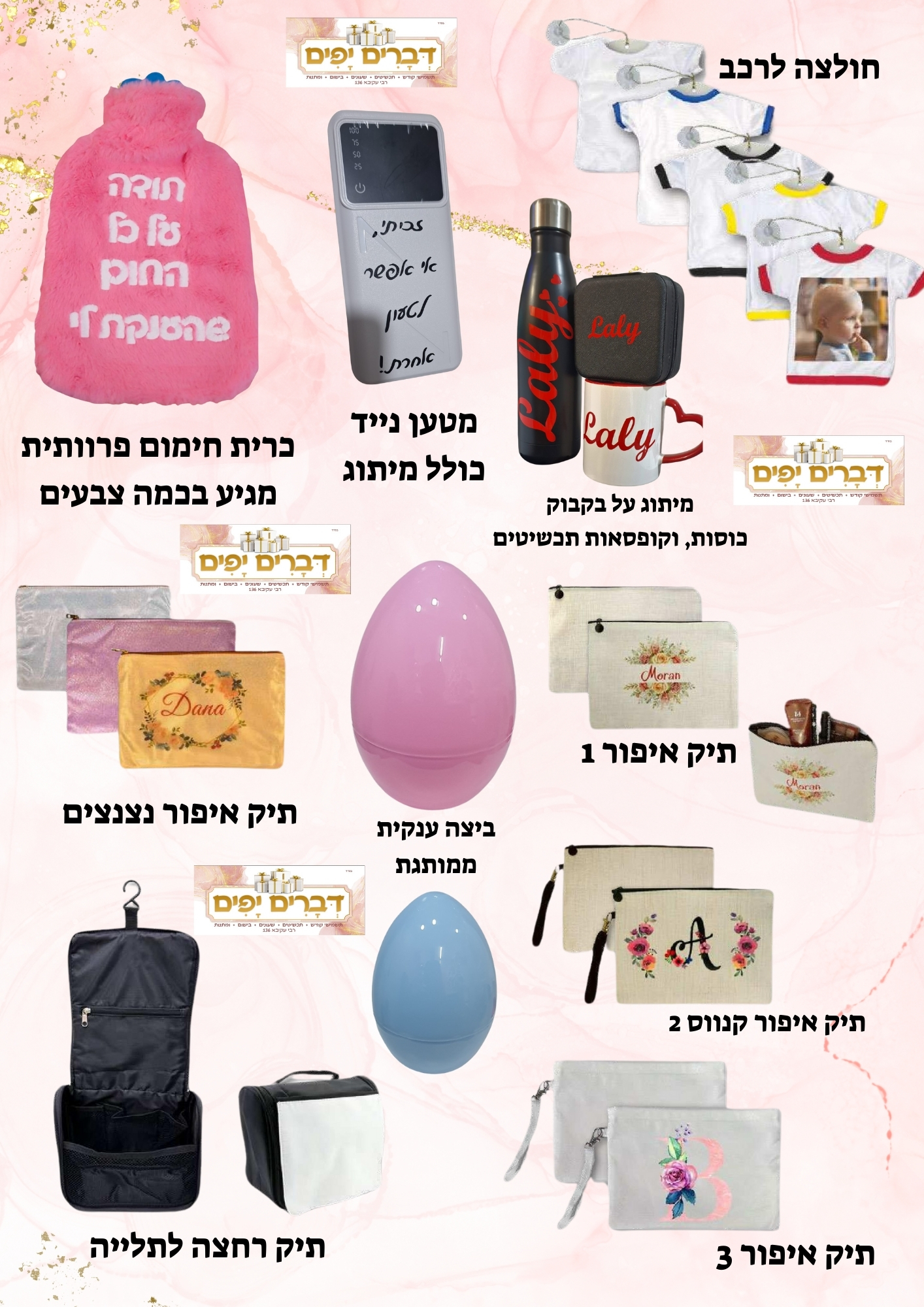 בחנות דברים יפים בבני ברק רח' רבי עקיבא 136 תוכלו למצוא מגוון רחב של מוצרים שניתן להדפיס עליהם