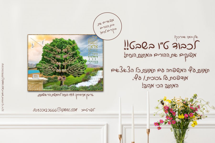 עיצוב אילן גדול על תמונת נוף מדהימה ובו תמונות כל הצאצאים