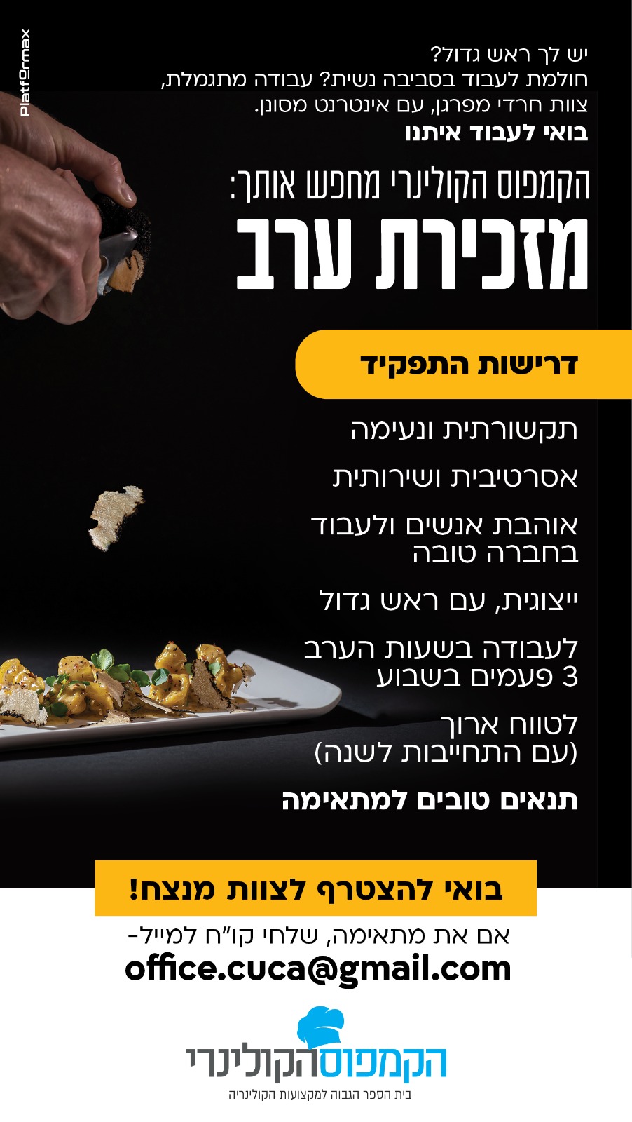 הקמפוס הקולינרי מגייס מזכירת ערב ←