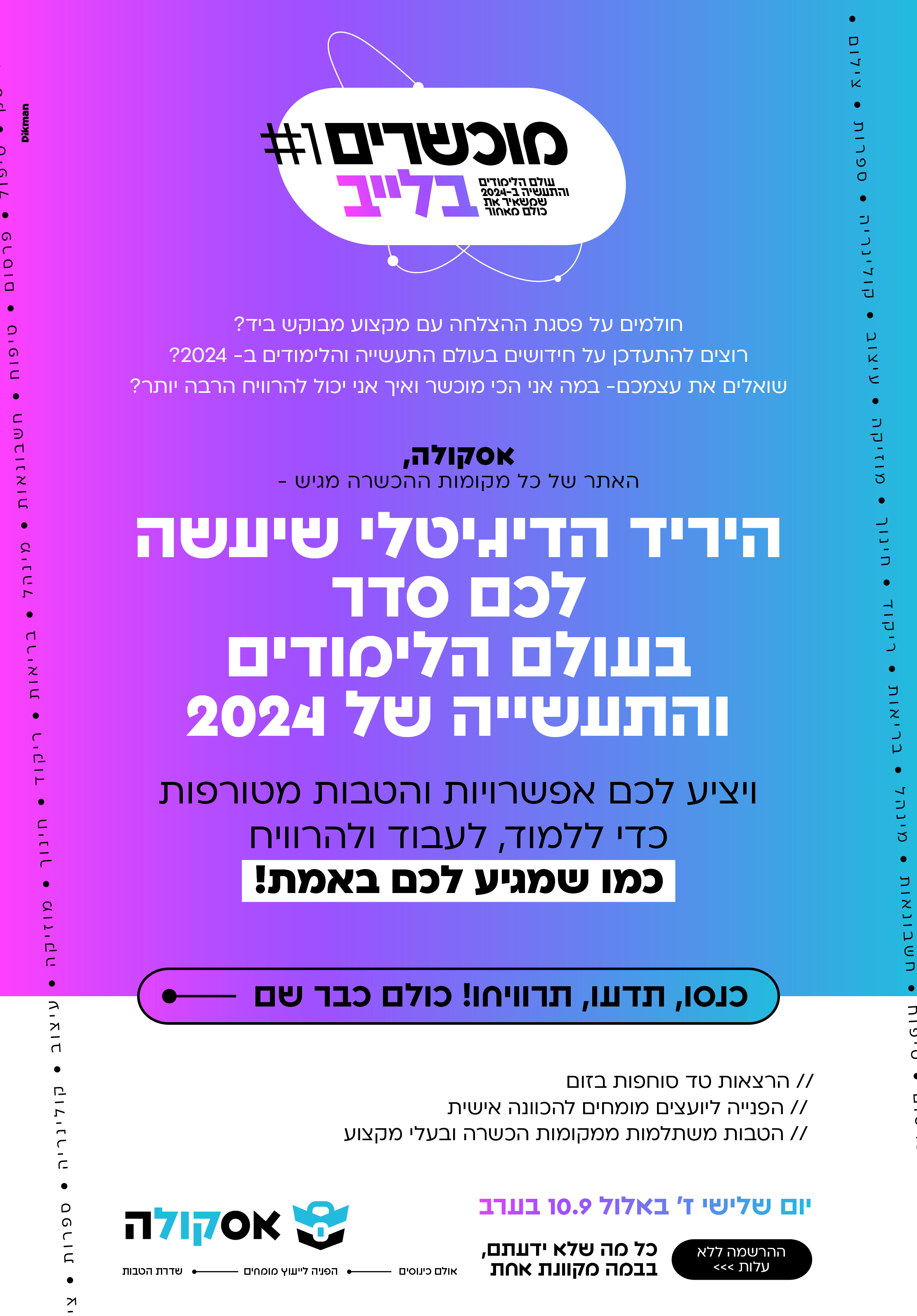 הרשמו עכשיו ללא עלות ליריד הלימודים וההטבות הגדול