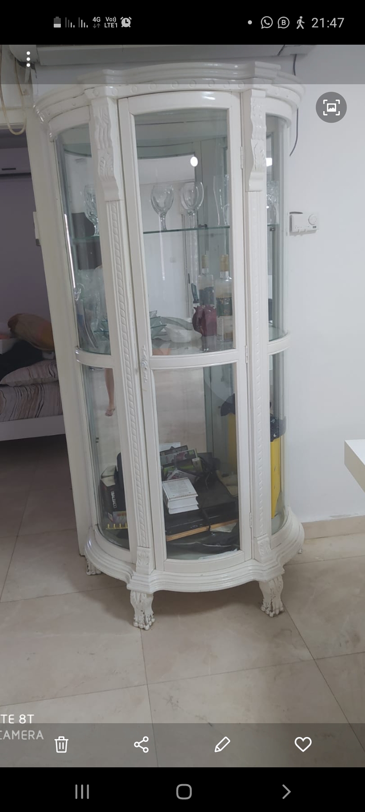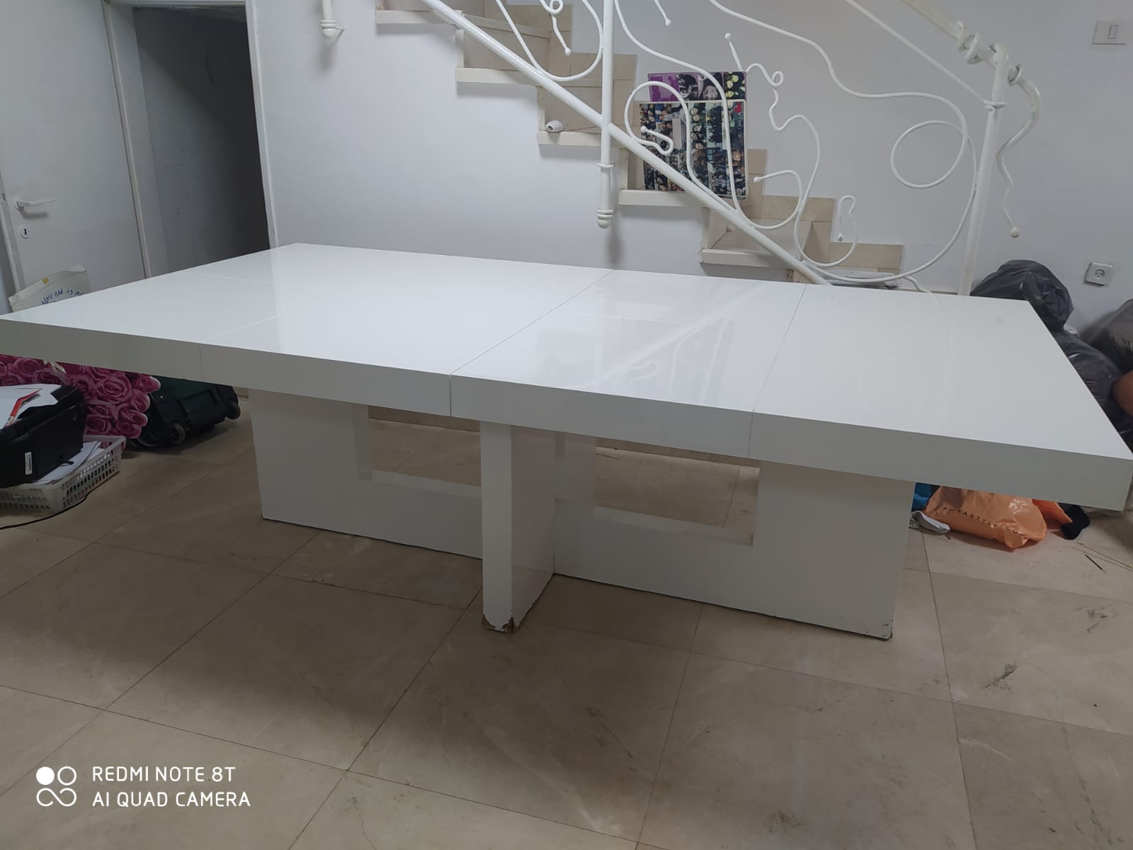 ויטרינה עם זכוכיות בצבע לבן וינטג' מהממת ושולחן אפוקסי בצבע לבן נפתח ל6 מטר