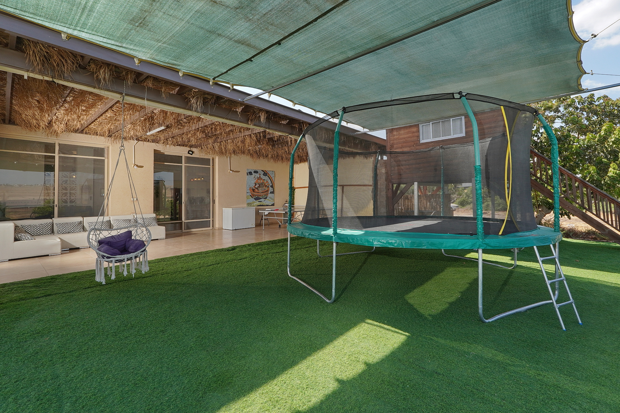 וילה מרווחת ונקיה מאוד ,חדרים גדולים,מתחם נדנדות וטרמפולינה גדולה עם מתזים לילדים,מתחם פרטי בלי שכנים,בריכה גדולה 5*10 עם אפשרות לצניעות,מקרר גדול+מקפיא נפרד,חצר גדולה מאוד להרגיש אוירה וחופש באמת