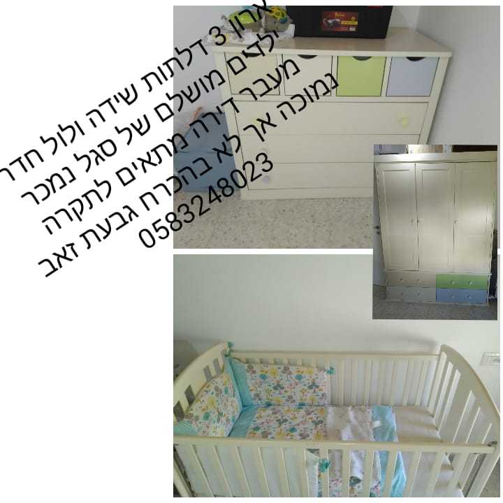 חדר תינוק שידה לול וארון 3 דלתות במצב שמור מעץ מלא של חברת סגל נמכר עקב מעבר דירה מתאים לתקרה נמוכה אך לא בהכרח בכלל.
