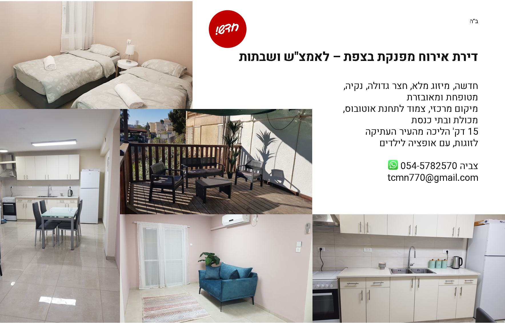 חדש! דירת אירוח מפנקת בצפת - לכל השנה