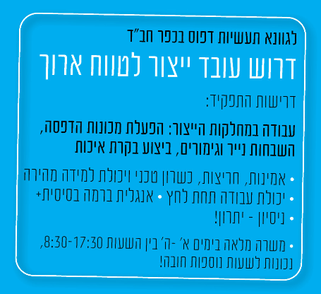 לגוונא תעשיות דפוס - דרוש עובד ייצור לטווח ארוך