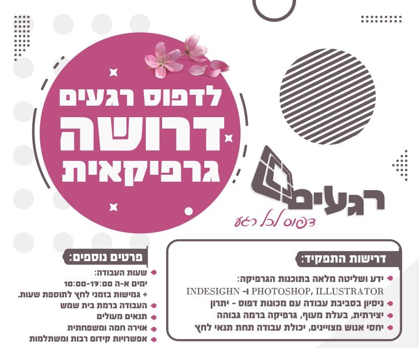 לדפוס רגעים בבית שמש דרושה גרפיקאית