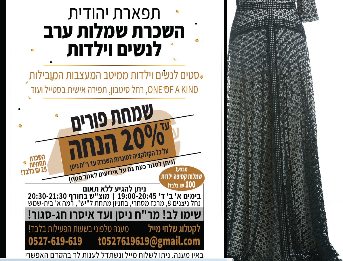 עד 20% הנחה על כל הקולקציה לסוגרות השכרה עד ר"ח ניסן בלבד!