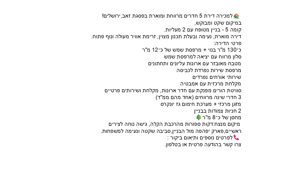 למכירה דירת 5 חדרים מרווחת ומוארת בפסגת זאב,ירושלים! מפרטי ללא תיווך, לרציניים בלבד.