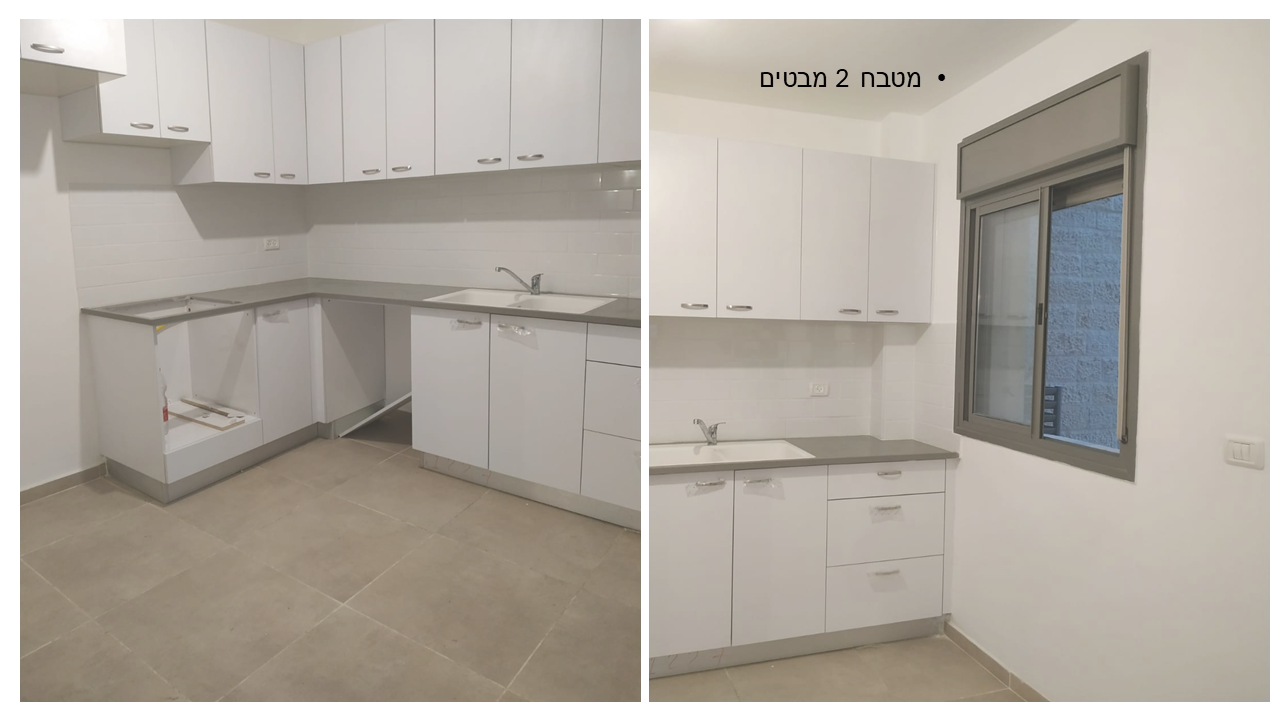 מטבח מאובזר עם ארונות עליונים ותחתונים