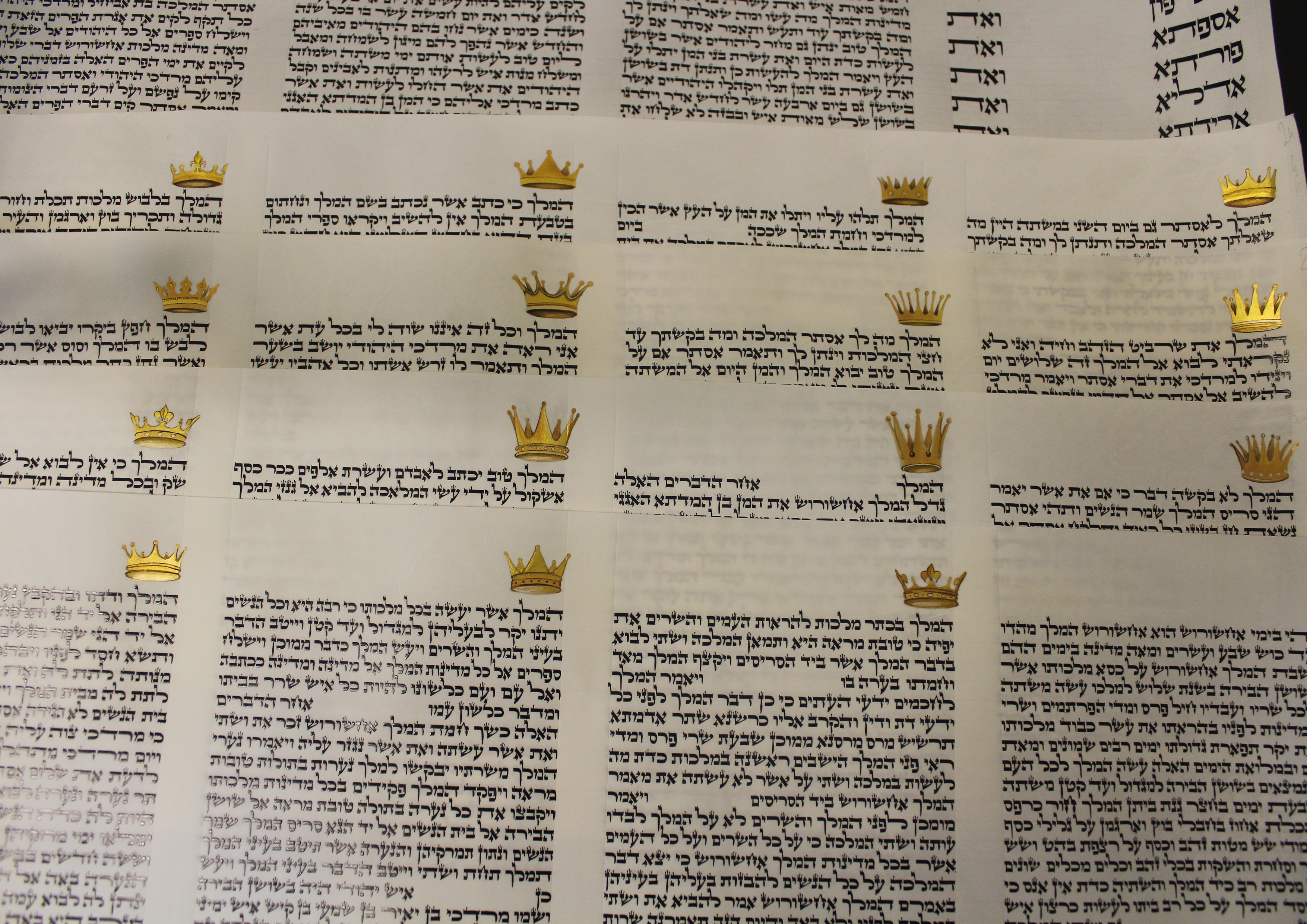 למכירה מגילת אסתר כתב ב"י 21 שורות המלך עם כתרים מאוירים