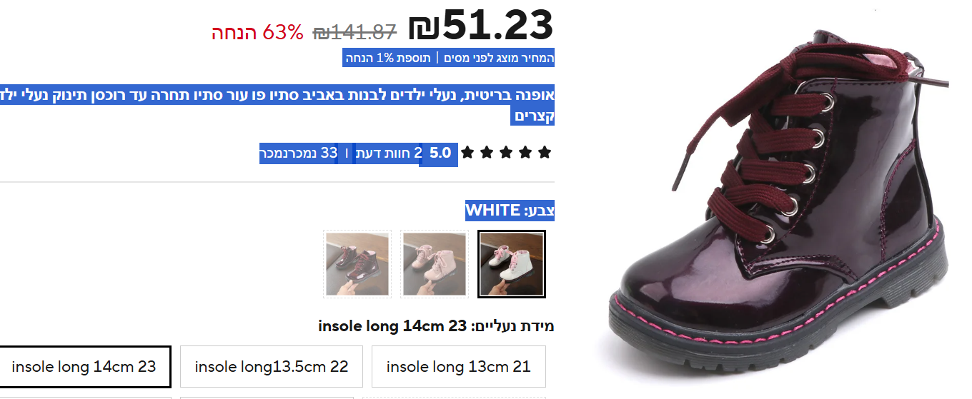 מגפונים לילדה מידה 23 לק בורדו מטריפות