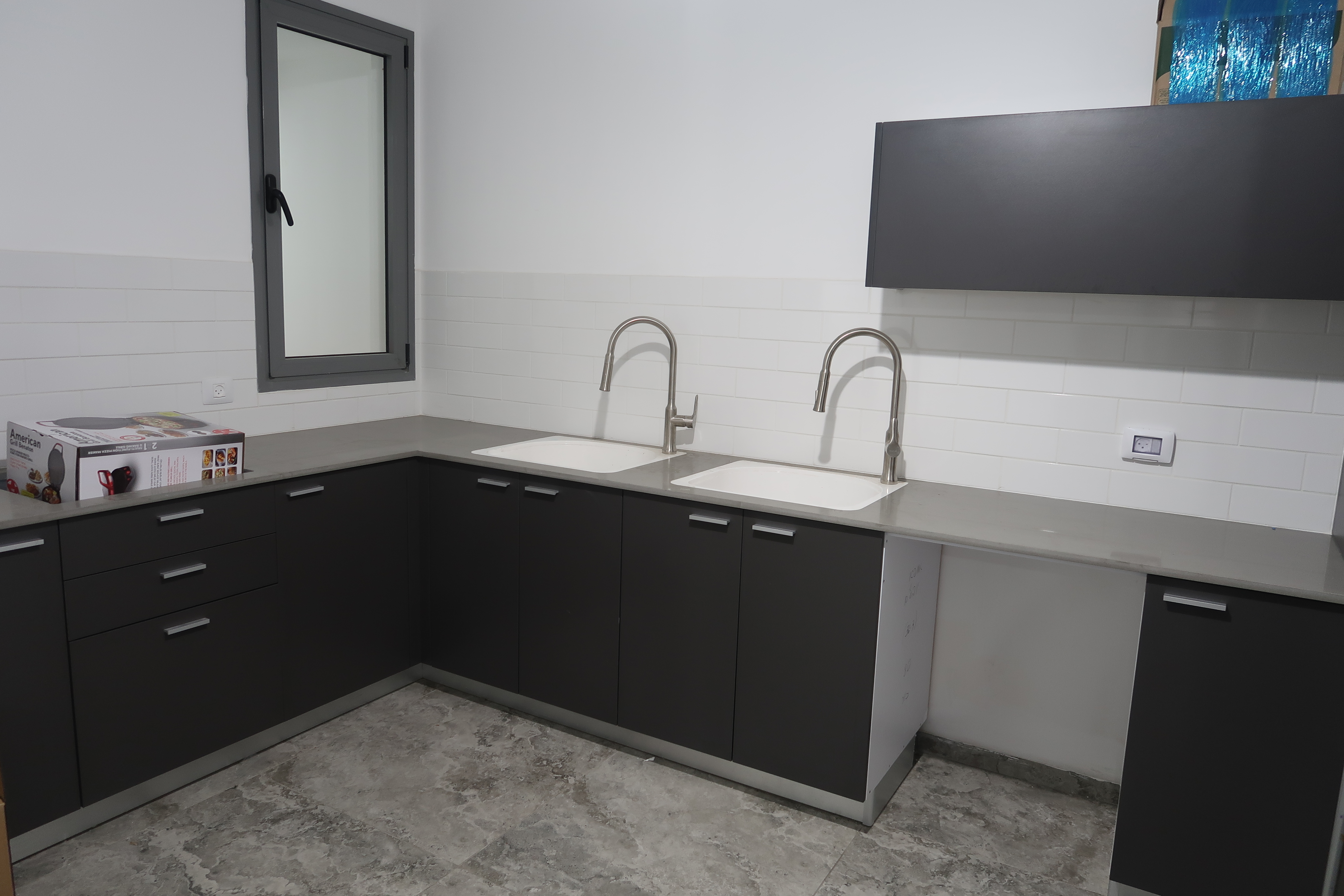 ארונות למטה + שיש + 2 כיורים