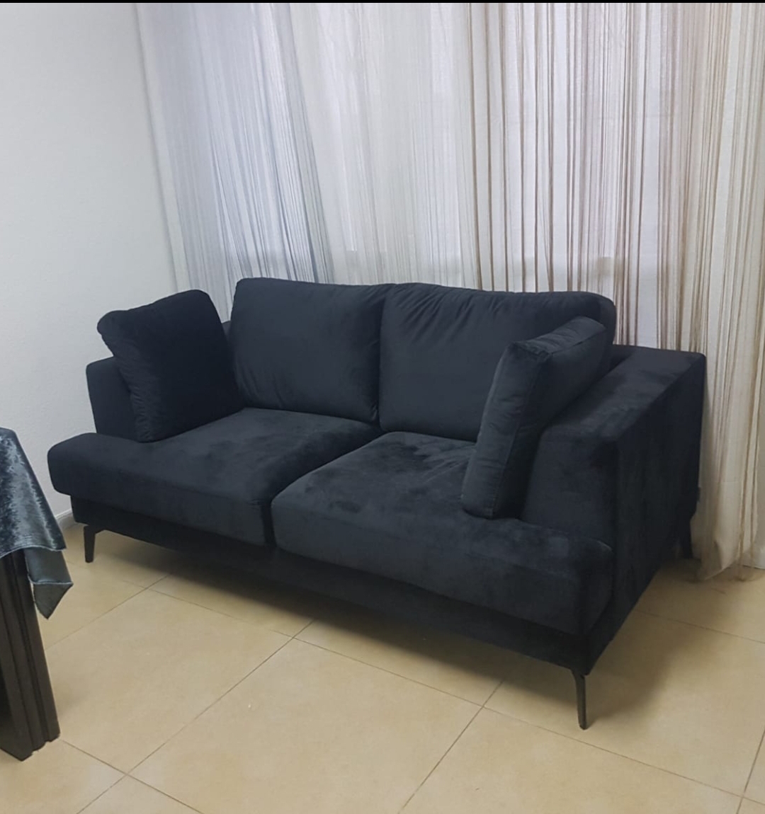 למכירה ספה קטיפתית שחורה נוחה ויפה בבני ברק