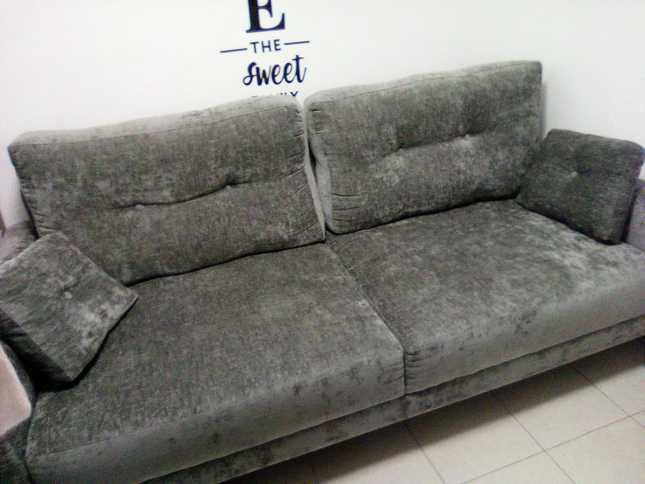 ספה דו מושבית, צבע אפור משופשף + 2 כריות.