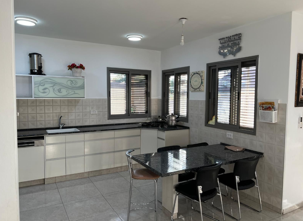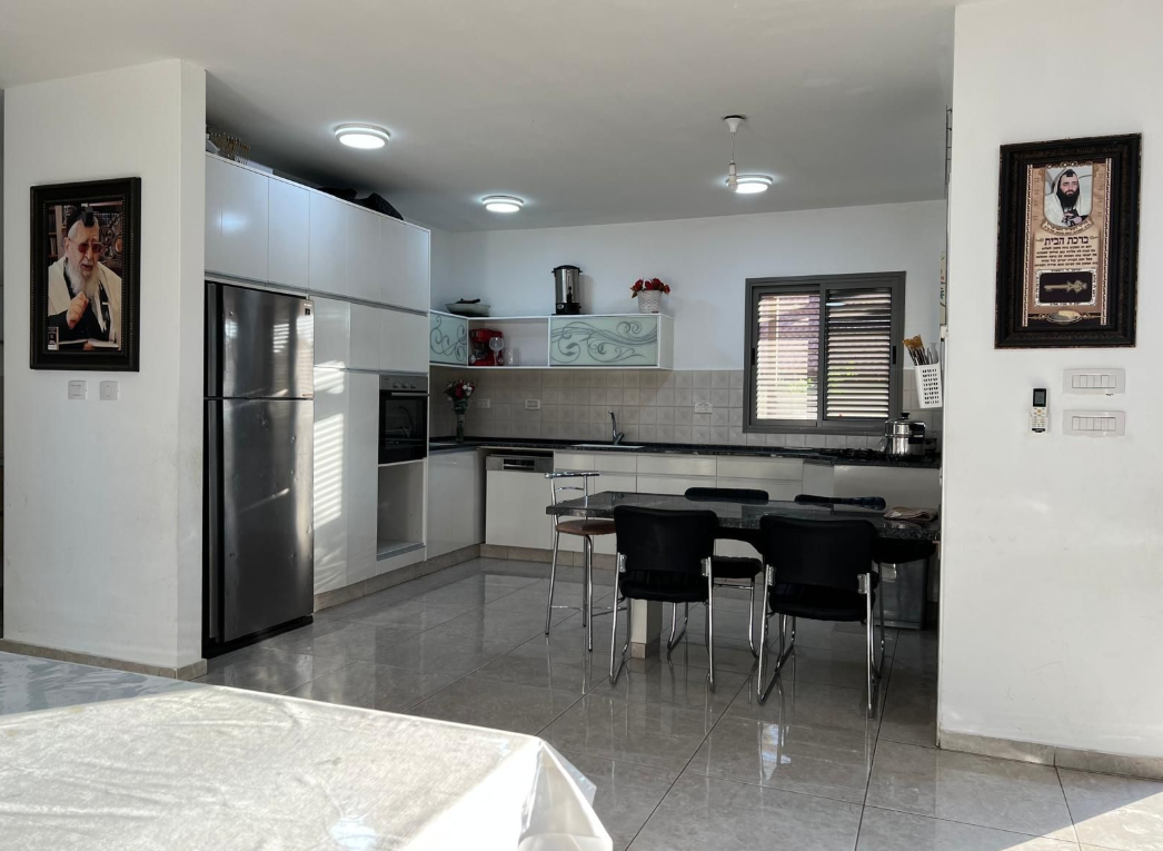 סלון גדול ומואר, מטבח כשר מרווח עם 2 כיורים ו־2 תנורים (בשרי וחלבי), אי משיש,