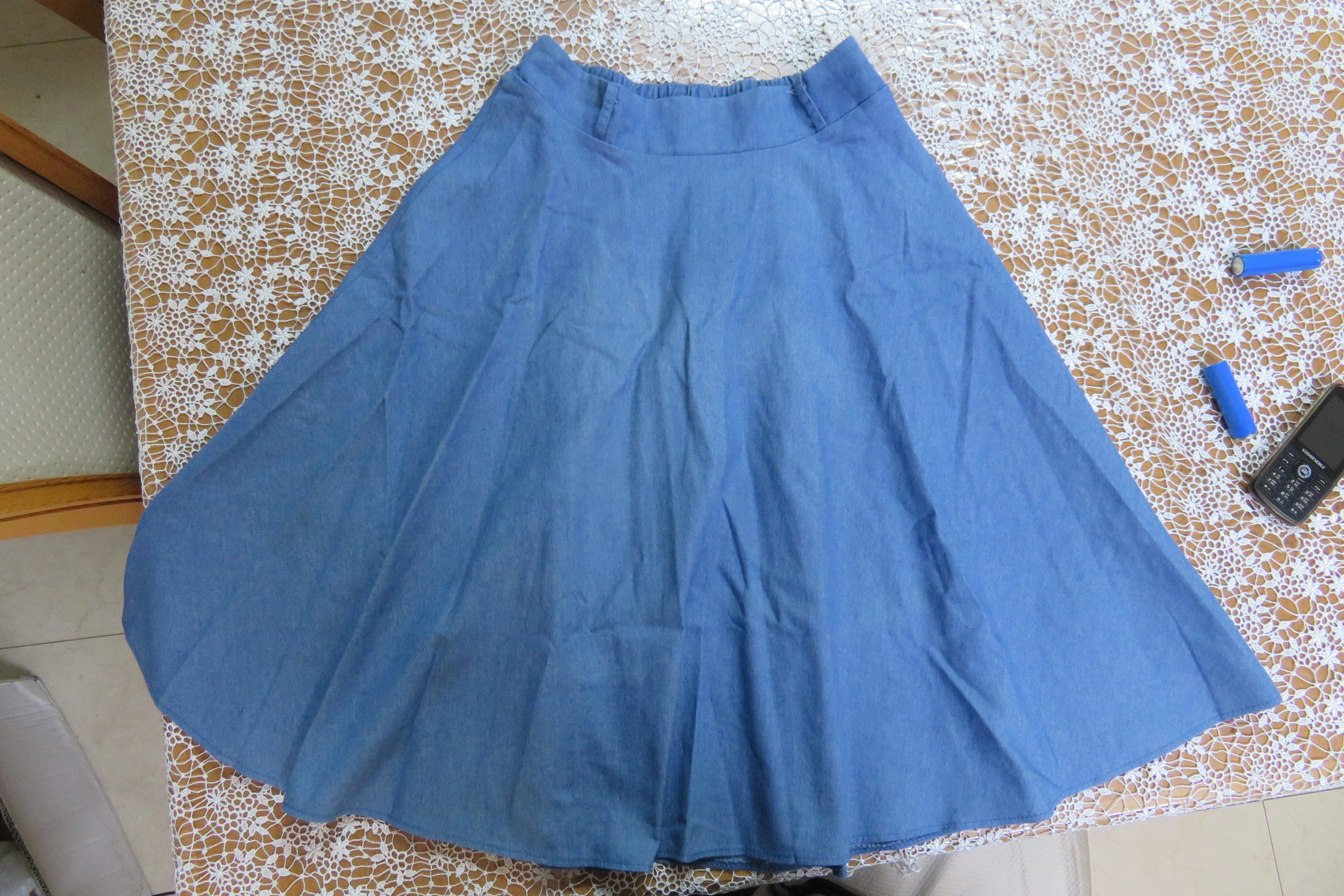 למסירה בחינם חצאית בצבע ג'ינס בהיר, מתרחבת, מידה 16 (בערך)