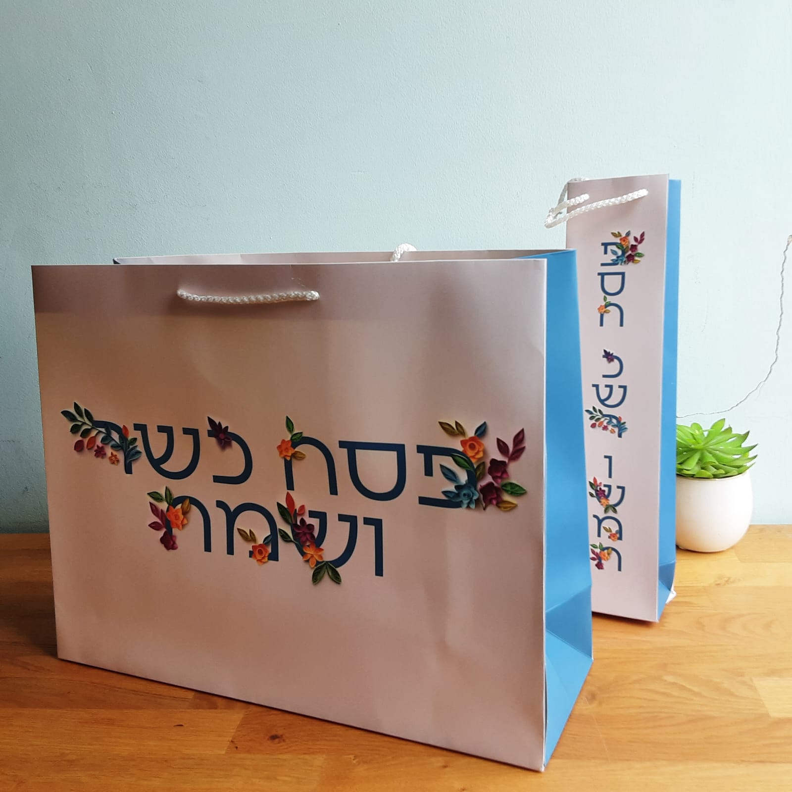 לקראת חג הפסח- למכירה 35 שקיות מתנה מעוצבות ו35 שקיות ליין באותו עיצוב!