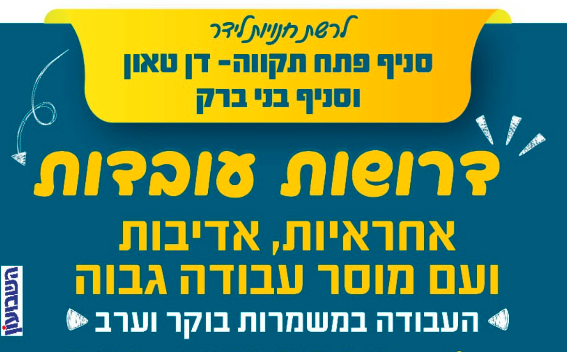 דרושות עובדות אחראיות, אדיבות ועם מוסר עבודה ברמה גבוהה