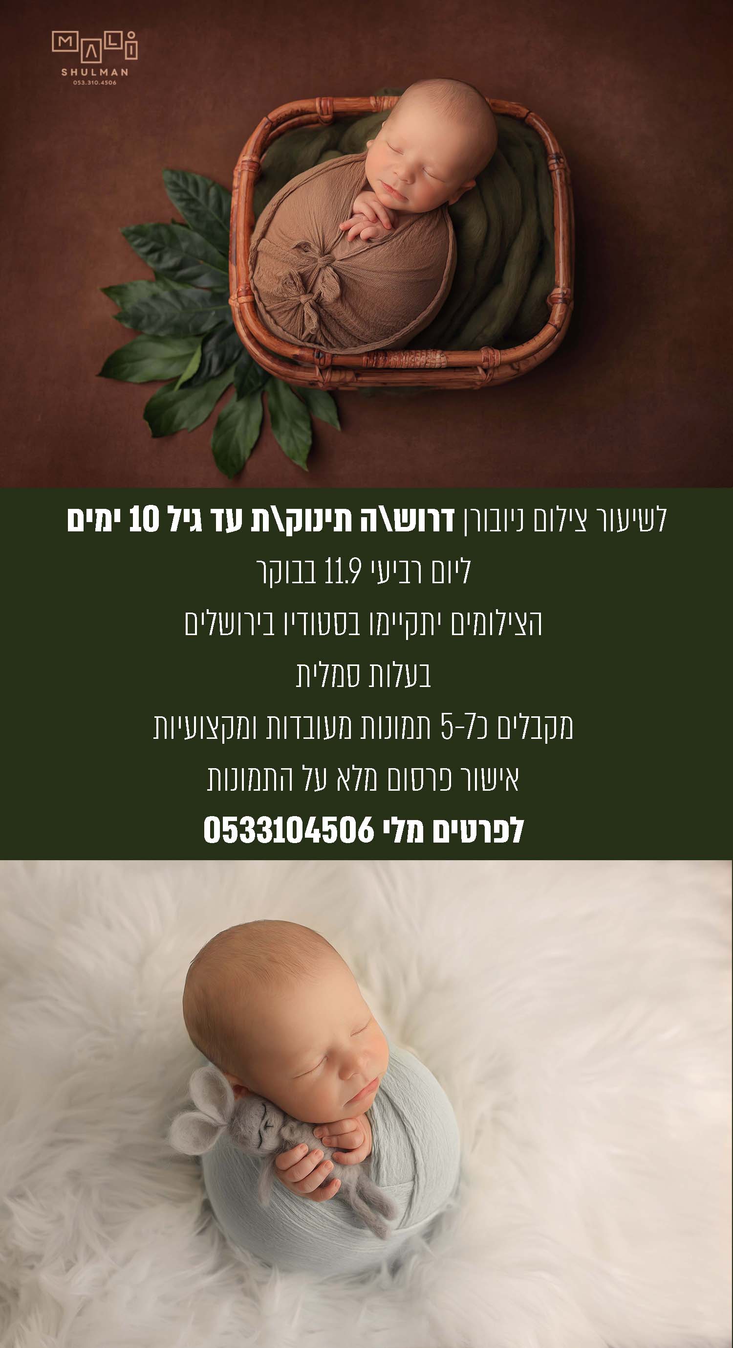 לשיעור צילום ניובורן דרוש\ה תינוק\ת ליום רביעי 11.09
