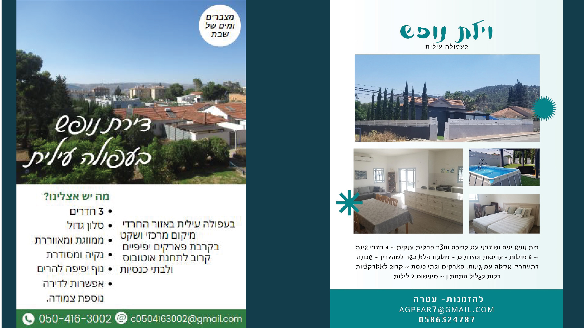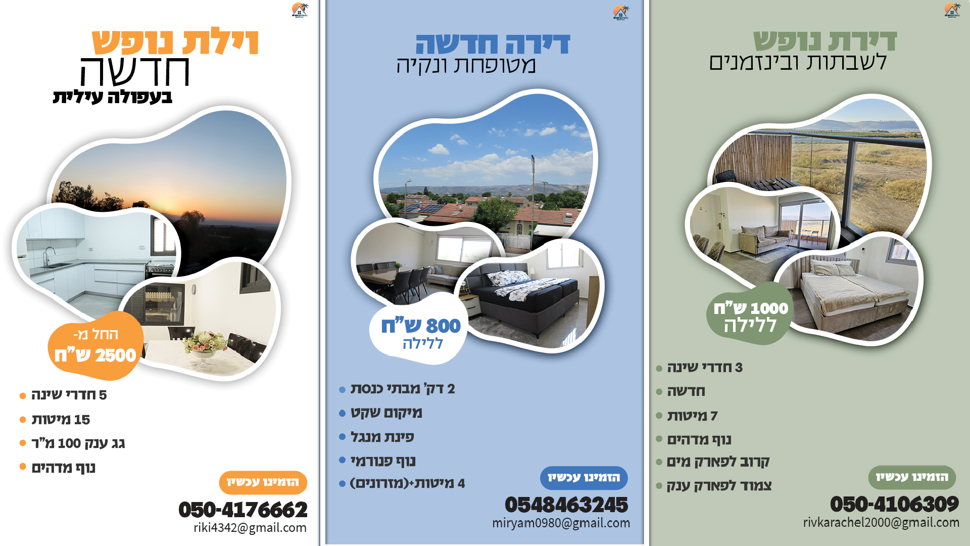 מבחר גדול של וילות ודירות נופש בעפולה לשבתות ולבין הזמנים