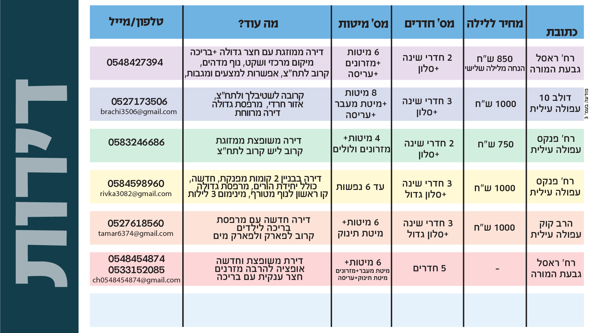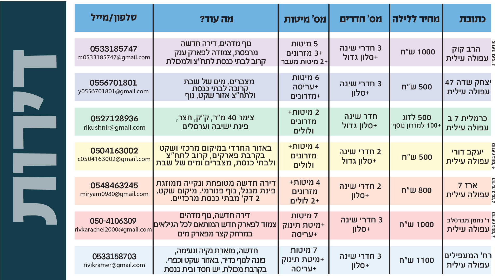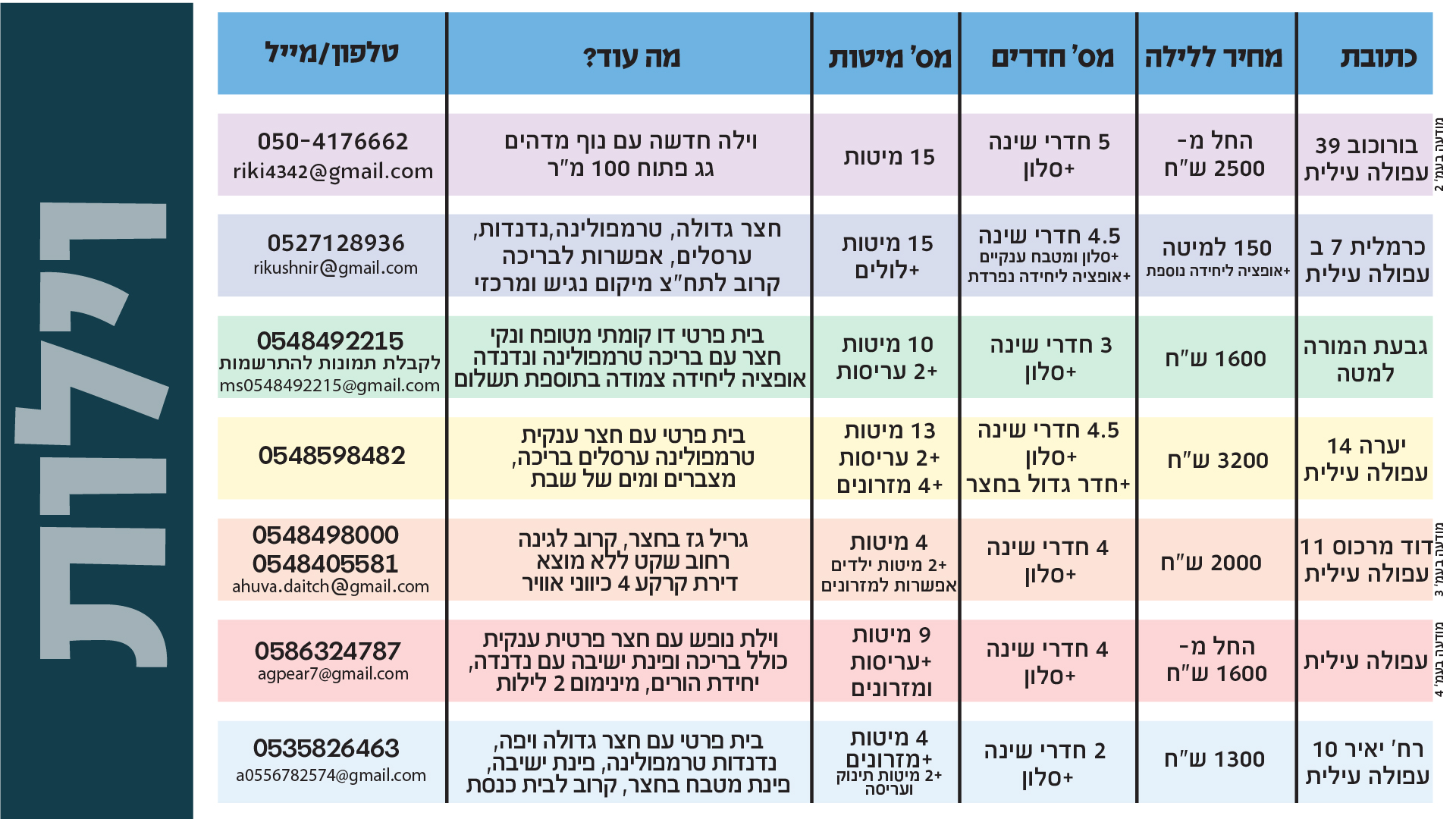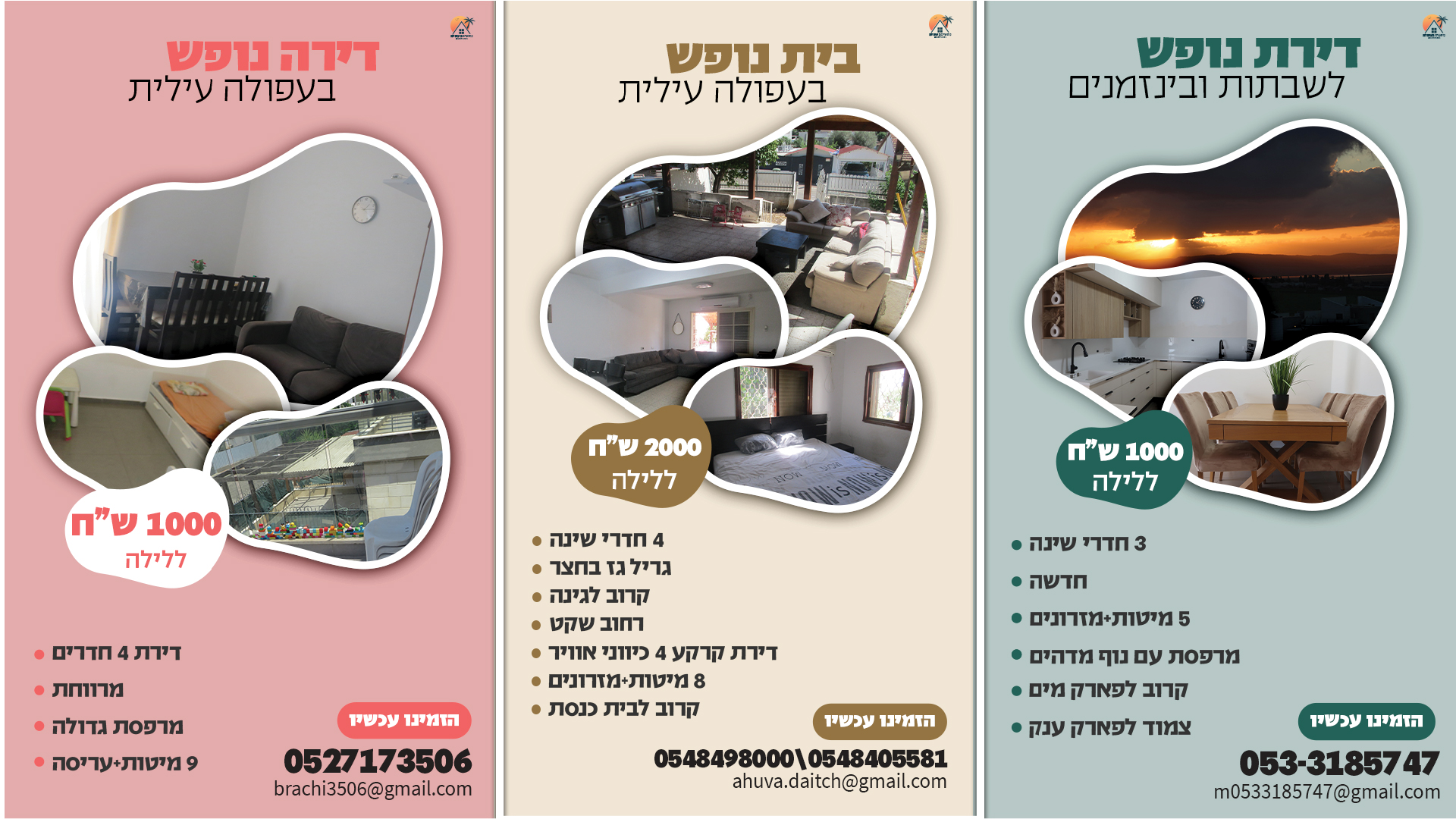 תוכלו למצוא בדיוק מה שאתם מחפשים לפי מספר חדרים מספר מיטות ותקציב שיש לכם