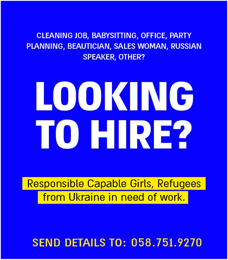 יש לנו מאגר תעסוקה עבור בנות מהממות פליטות מאוקראינה שעברו לישראל וצריכות עבודה ☺️