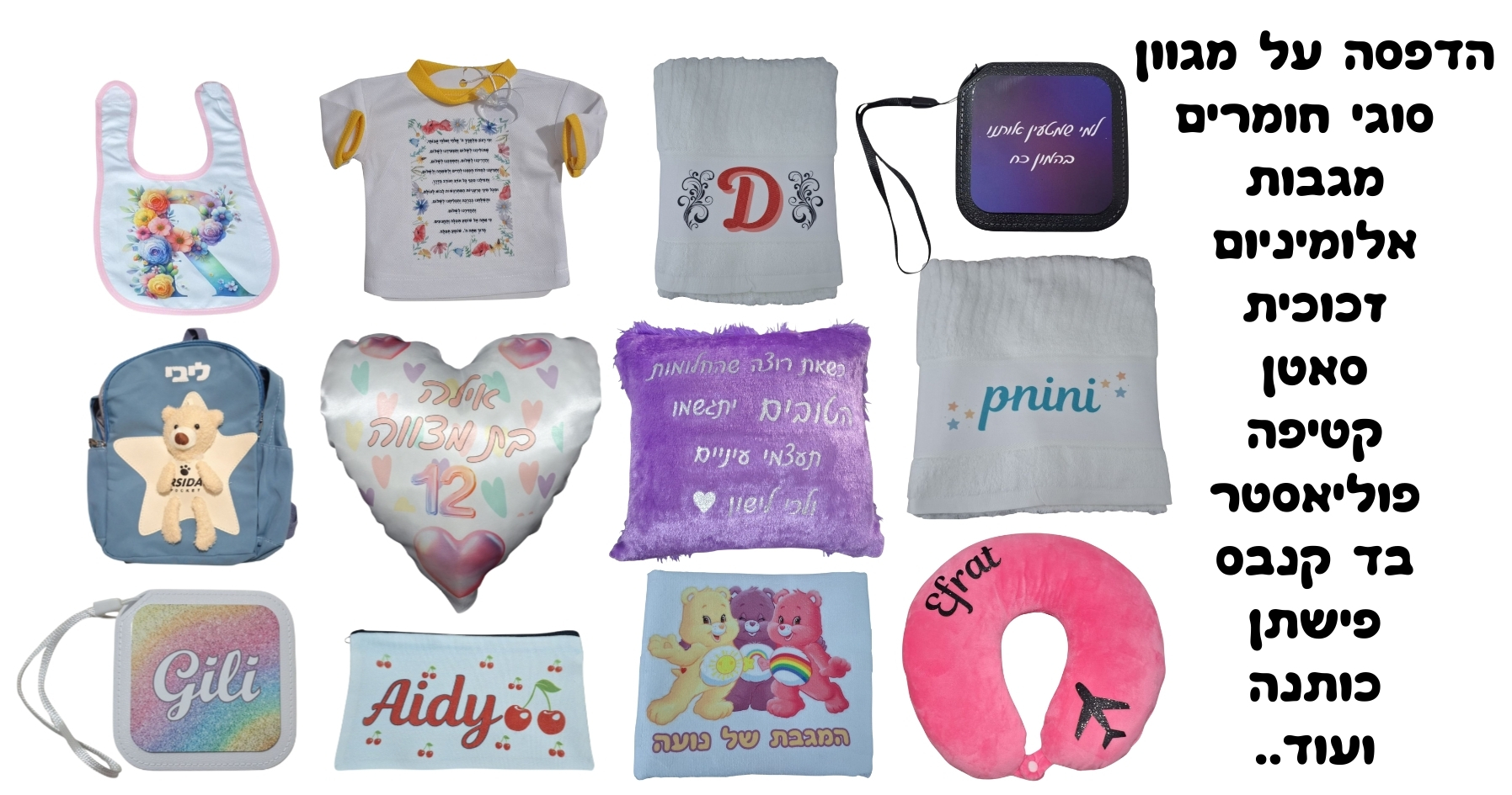 ממזכרות קטנות עם משמעות גדולה ועד מתנות יוקרה מרהיבות – הכול בעיצוב אישי והדפסה לפי בחירה, כך שכל מתנה הופכת לייחודית בדיוק כמו מי שמקבל אותה.
