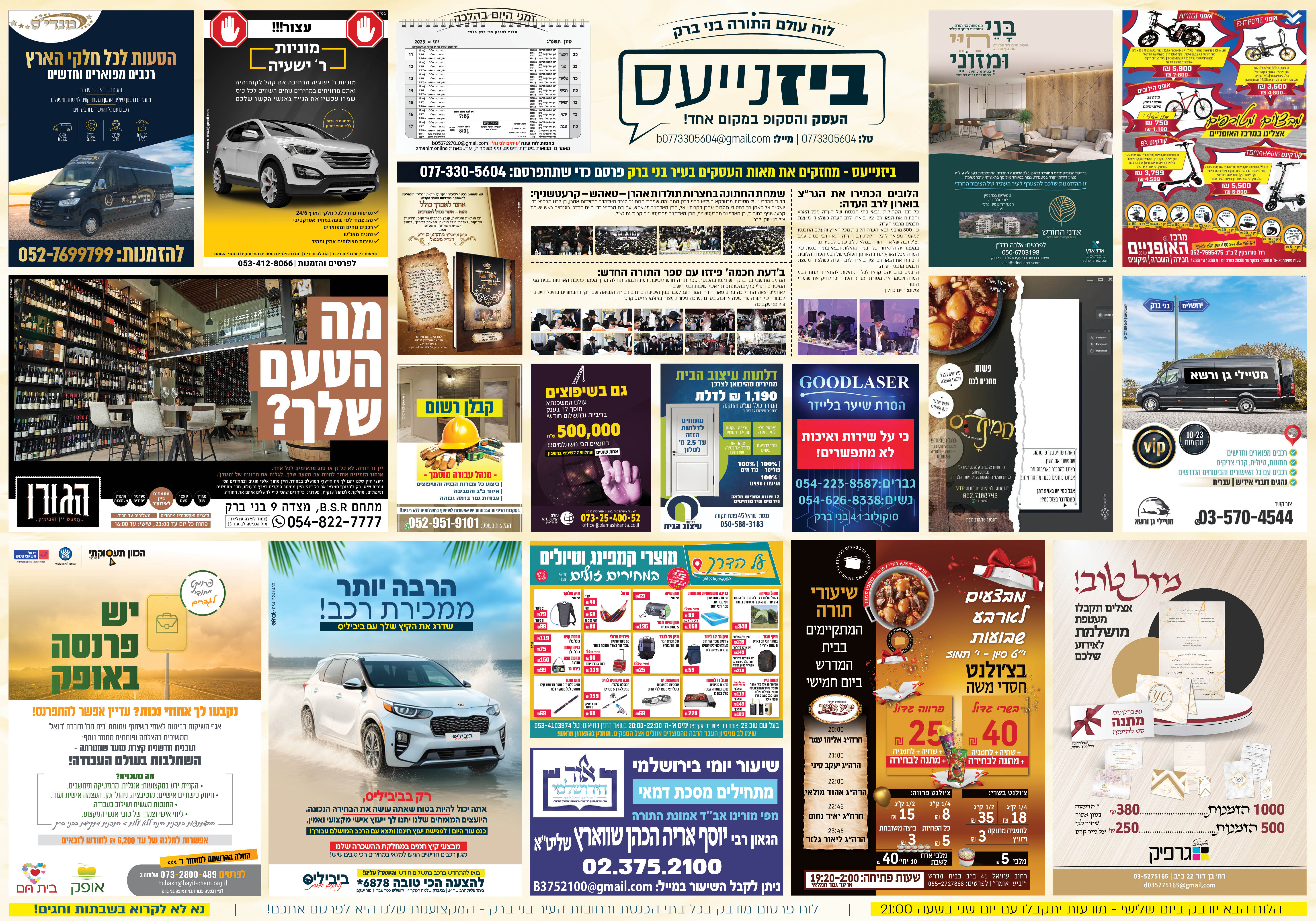 לוח שמודבק בעיר בני ברק בחשיפה הכי אפטקיבית ויעילה
