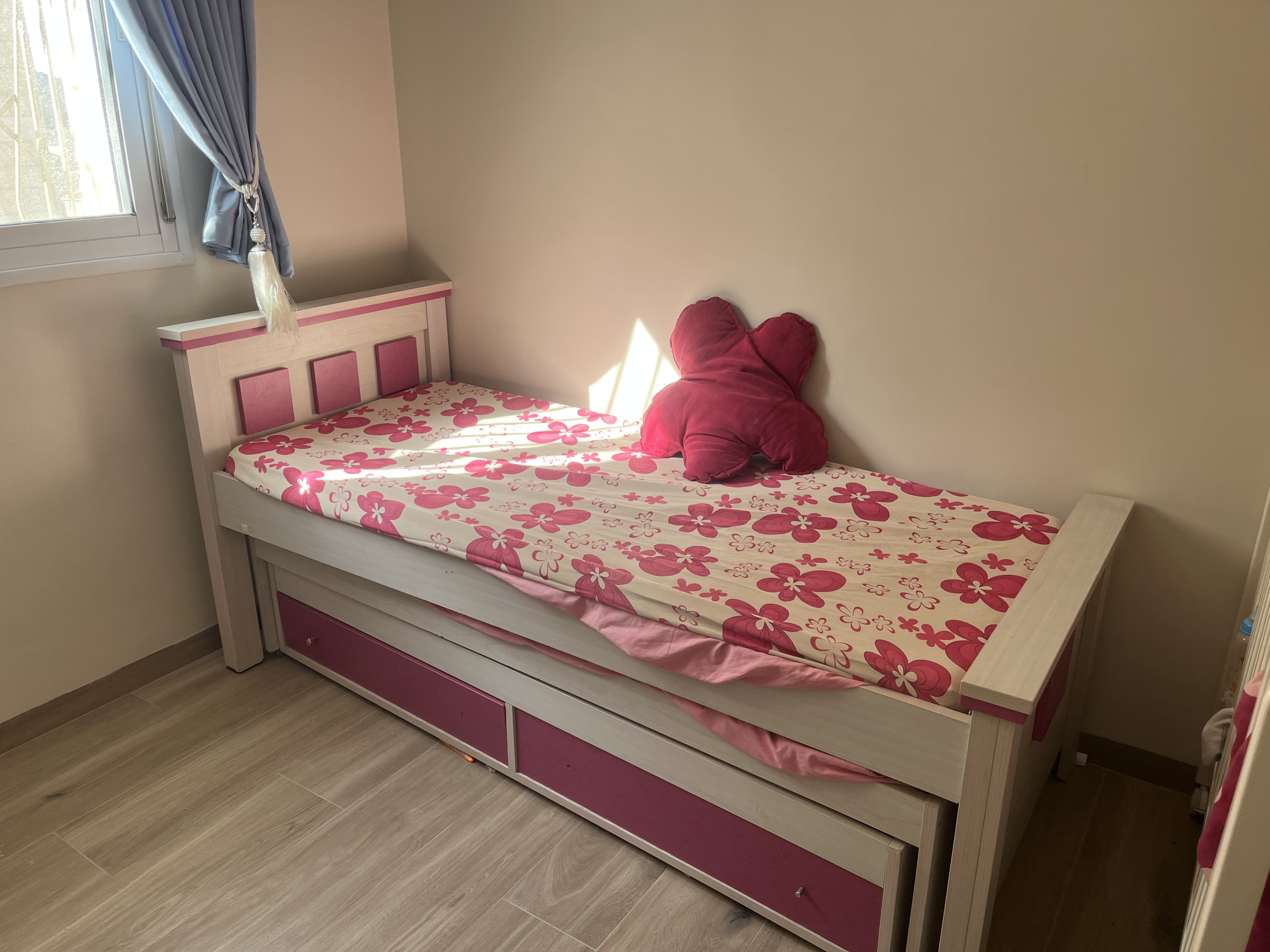 מיטת נוער משולשת מעץ של שפיצר משומשת עם מגירה תחתונה ומזרנים