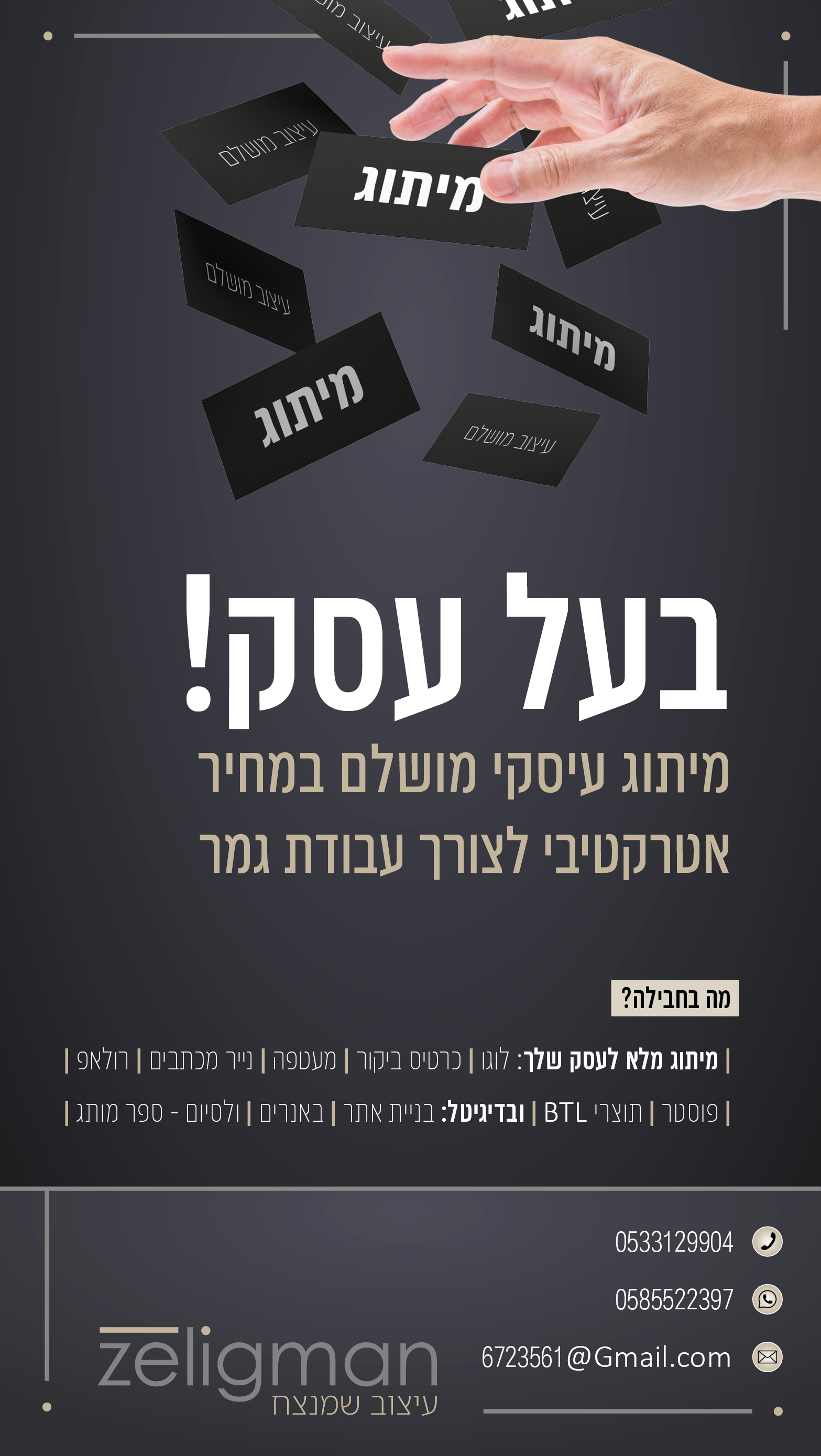 מיתוג עיסקי (עיצוב גרפי לעסק) מושלם במחיר אטרקטיבי לצורך עבודת גמר.