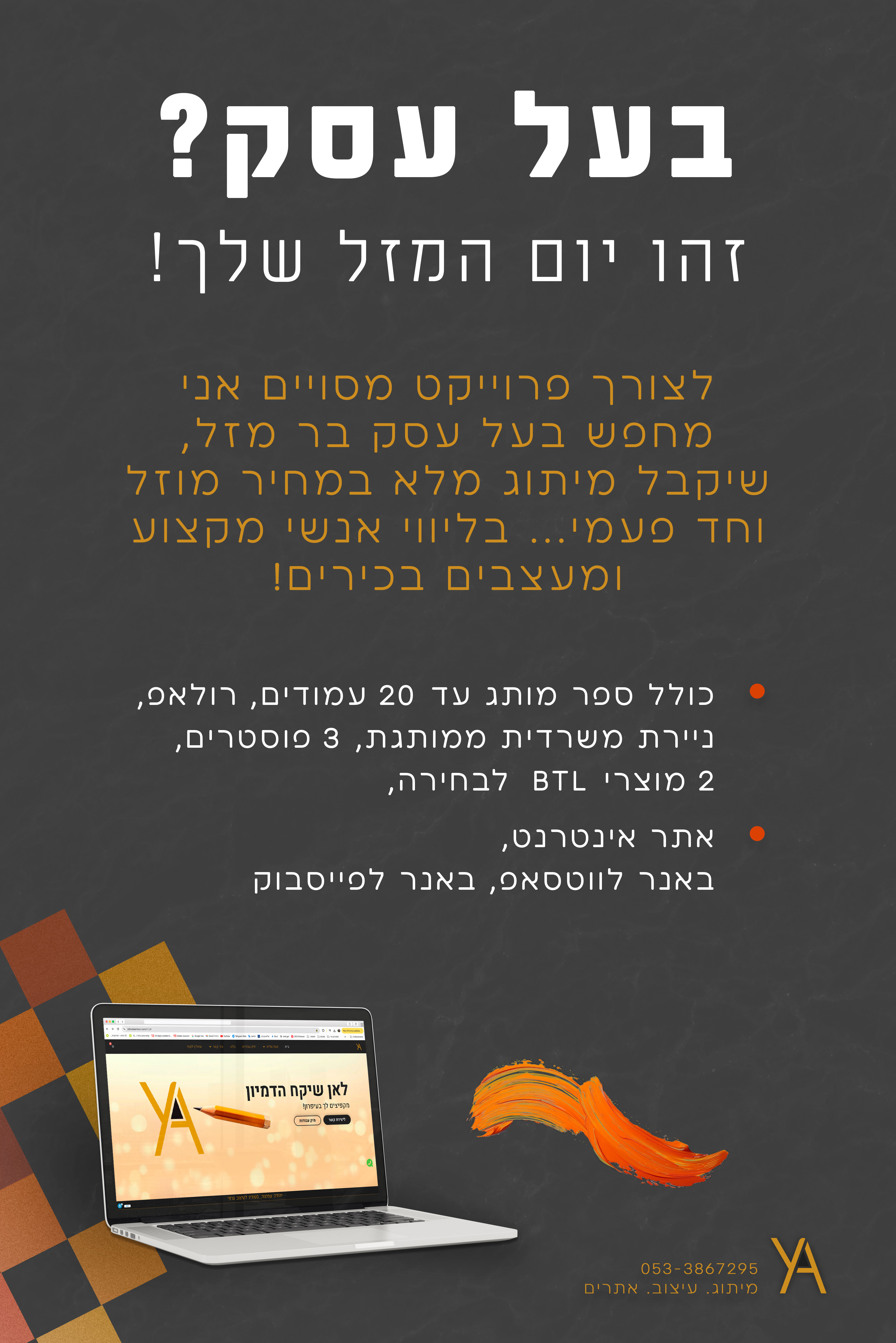 לצורך פרוייקט מסויים, מיתוג עסקי מושלם במחיר מוזל וחד פעמי! 🥂