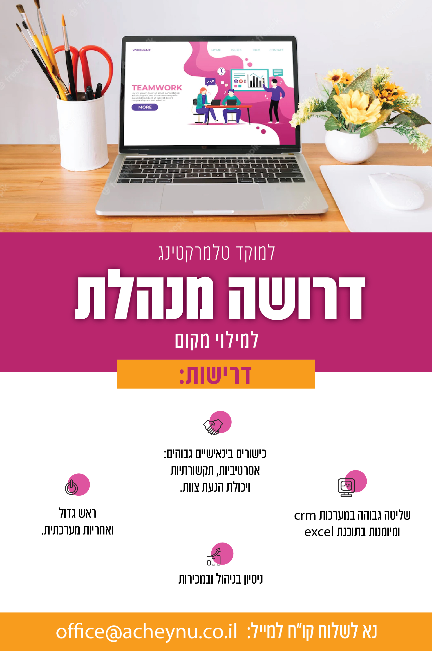דרושה מנהלת מוקד למילוי מקום במודיעין עילית