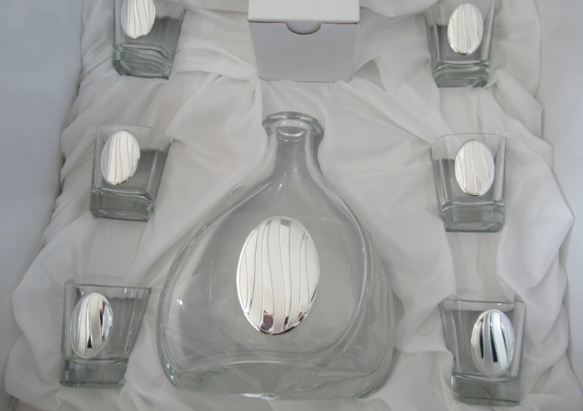 בקבוק וכוסיות קריסטל בשילוב כסף - הצורפים = 200 ש"ח