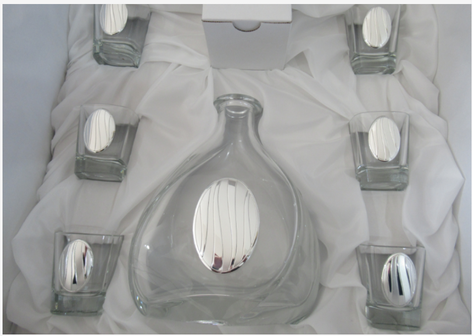 בקבוק וכוסיות קריסטל בשילוב כסף - הצורפים = 200 ש"ח