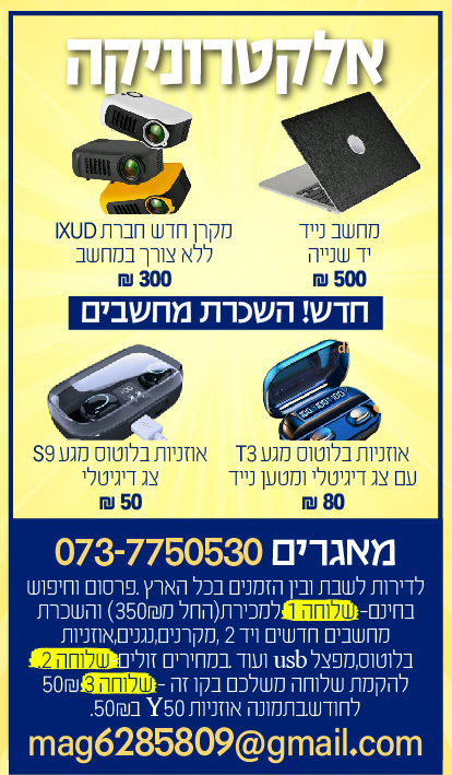 עוד מודעות מהמשתמש: שמואל.ח