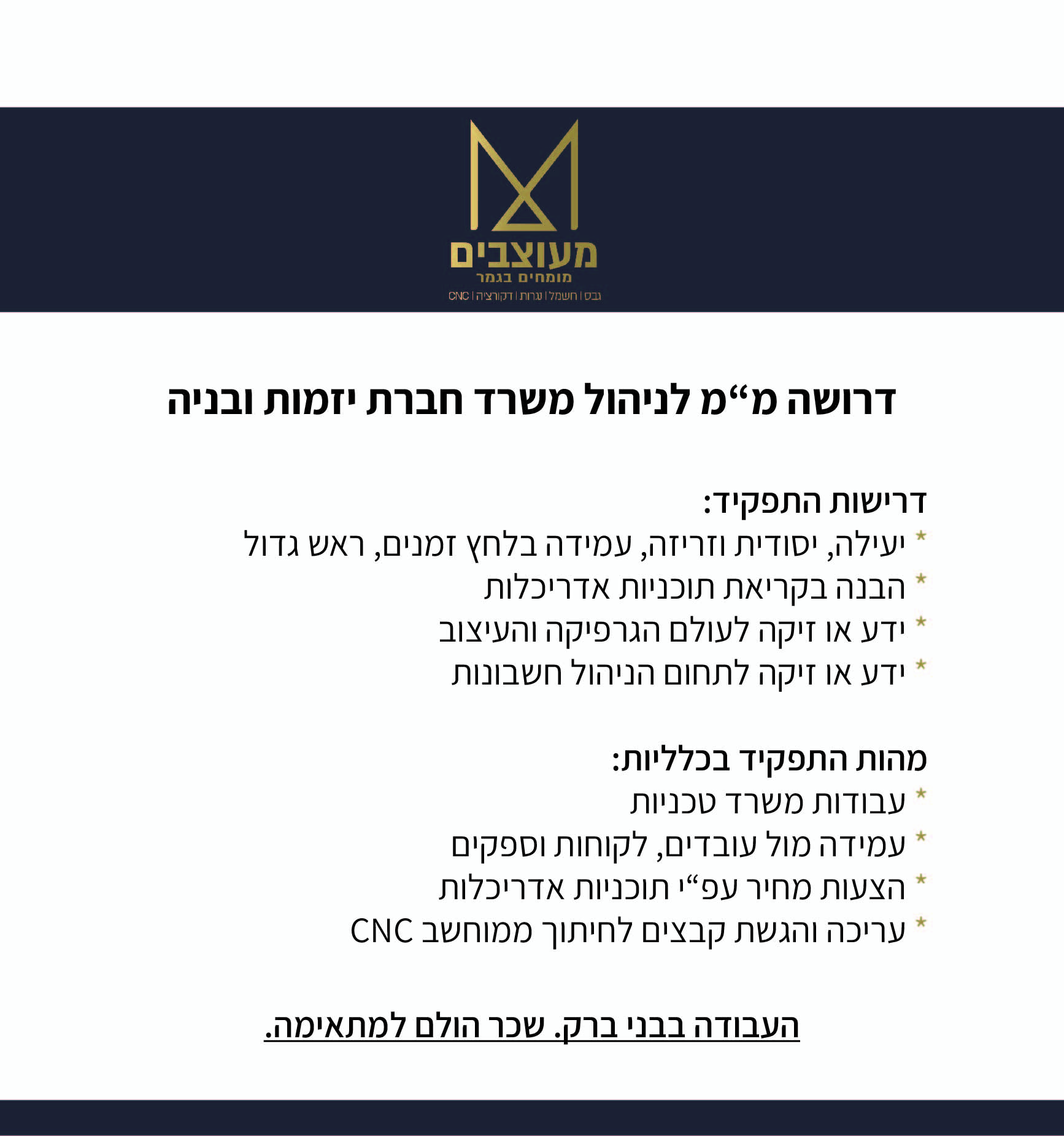 - עבודה במשרה מלאה