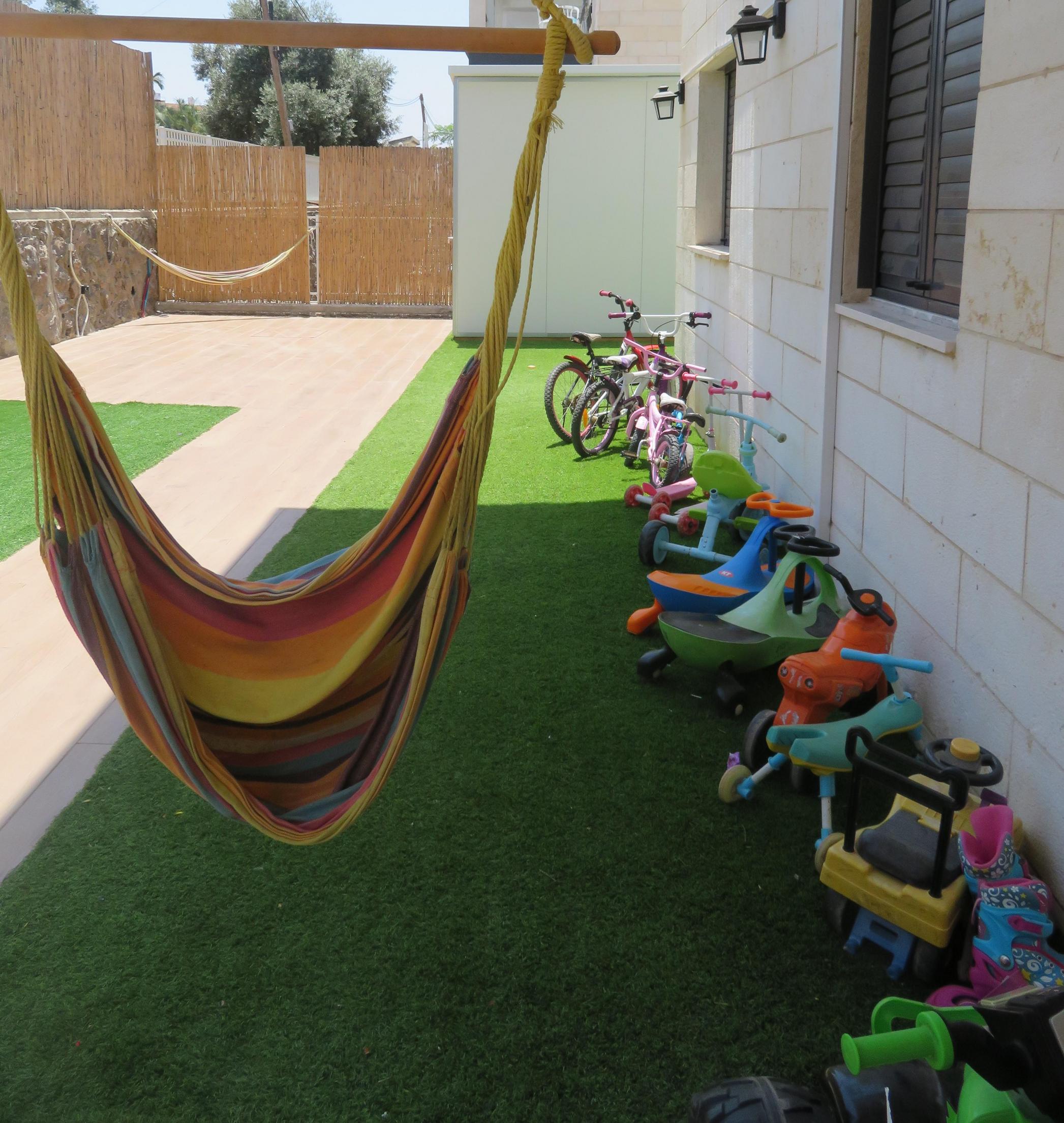 בחצר המפנקת שלנו יש קודם כל אויר מדהים השכונה ממוקמת בטבריה עלית לפני הירידות לחום של טבריה למטה(שזה מאד משמעותי מבחינת המזג אויר- ממש נעים כאן!)- 2 פינות ישיבה- טרמפולינה ענקית חדשה- משטחי דשא-ערסל-נדנדות-יש מקום לעשות מנגל - אופניים ובימבות לילדים בשפע.