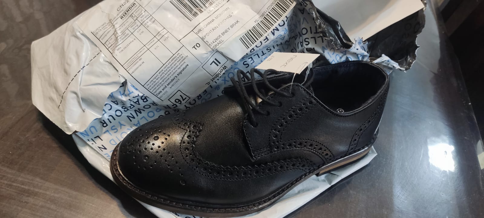 מוכרת נעליים אלגנטיות בצבע שחור לבנים מידה 34.5 גזרה רחבה מנקסט