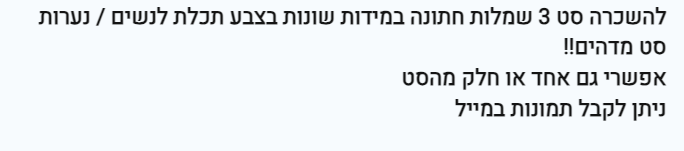 סט שמלות חתונה להשכרה