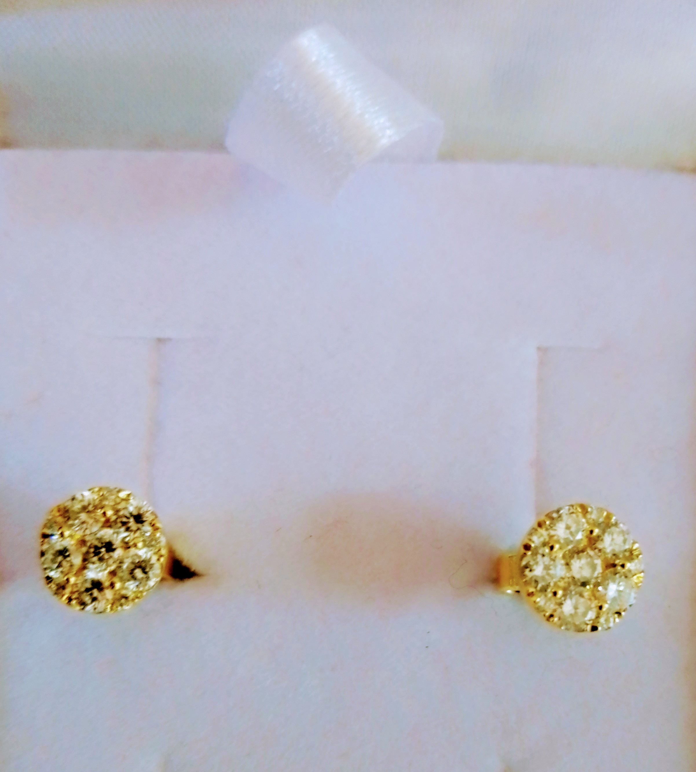 עגילים צמודות משובצות יהלומים ע"ב זהב צהוב.