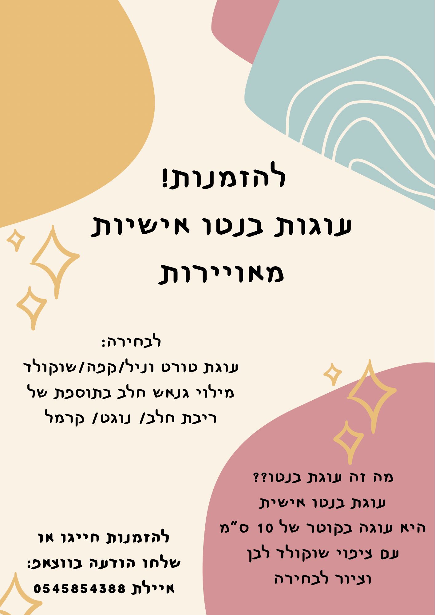 הי, קוראים לי איילת קייקס, אני מייצרת לכם חלום על עוגות אישיות, כל תמונה ציור שתבחרו,
