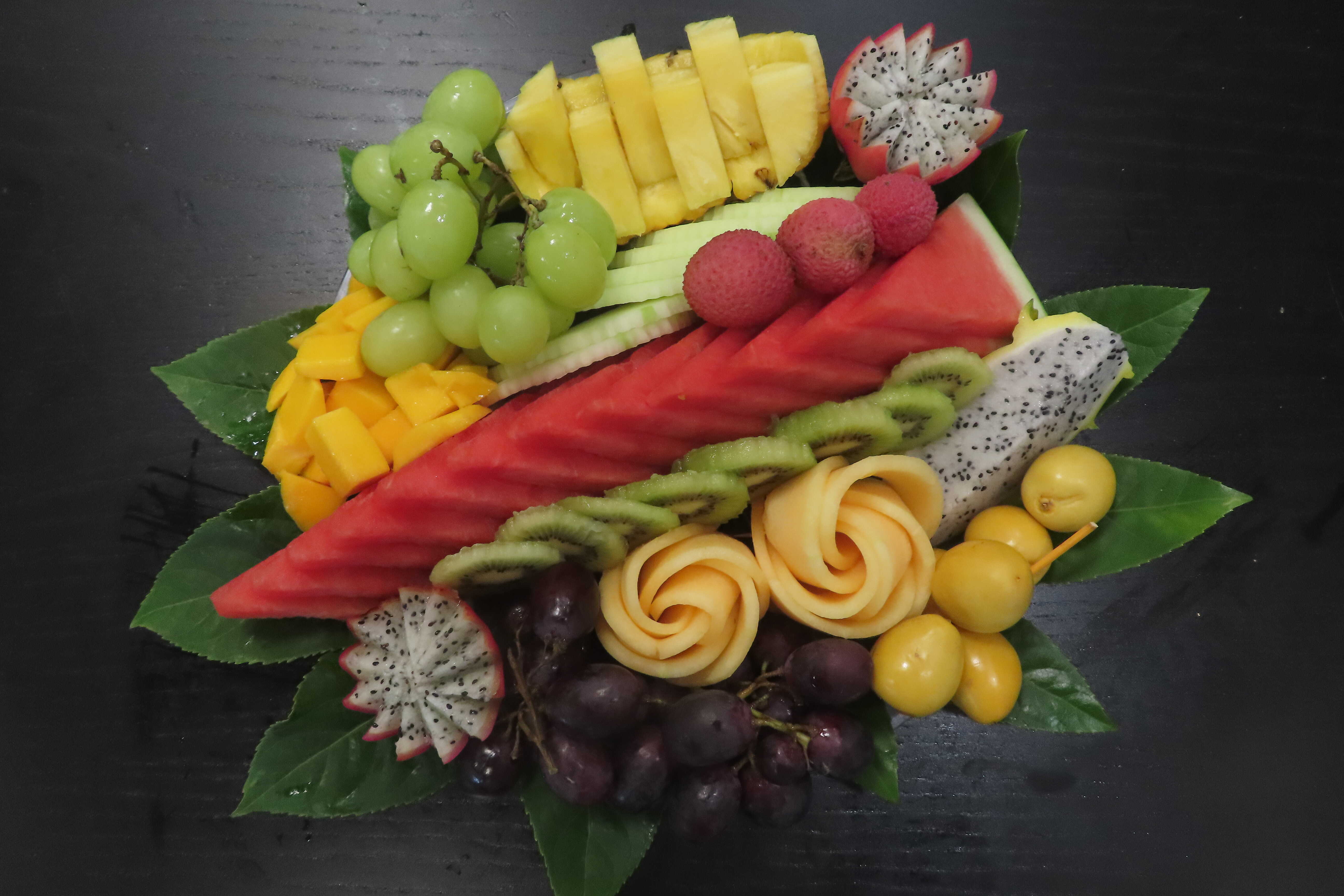 מכיל: אבטיח, סוגי מלונים, ענבים, אננס, סוגי קיוים, תפוזים, ועוד..