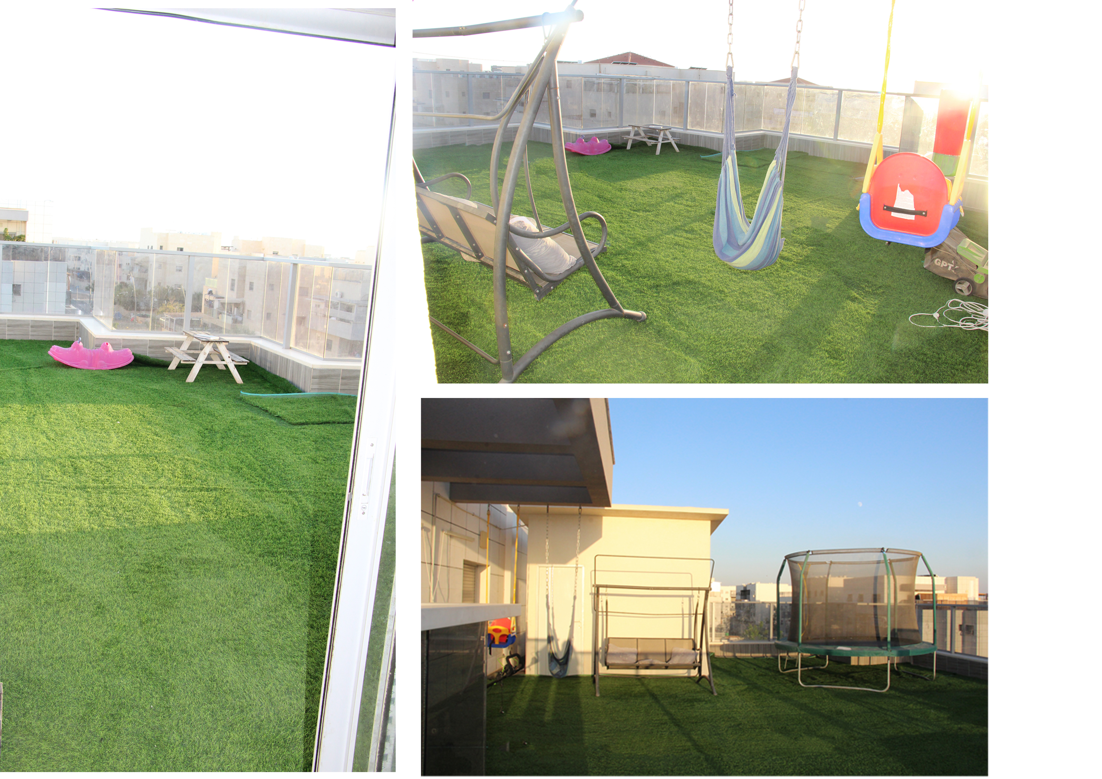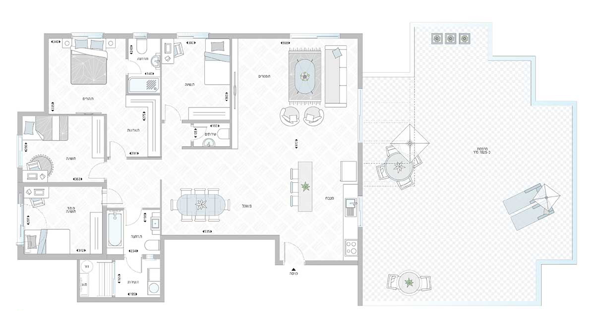 מרפסת שמש ענקית 102מ"ר, כולל פרגולת אבן ומחסן 10 מ"ר חיפוי שלייכט,