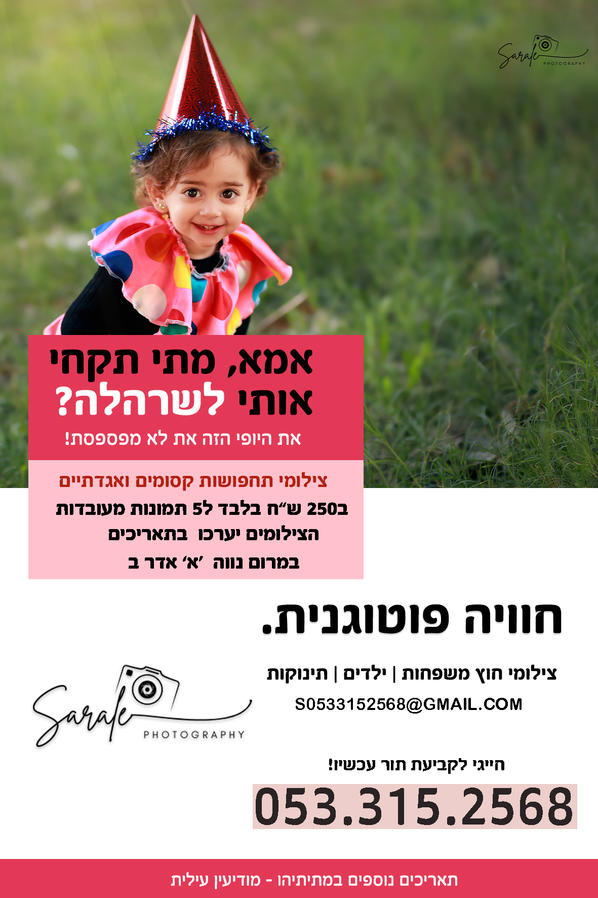עכשיו - בהנחה מיוחדת לרגל החג - צילומי פורים סומים - במקום 350 - 250 ש"ח בלבד!!!!!