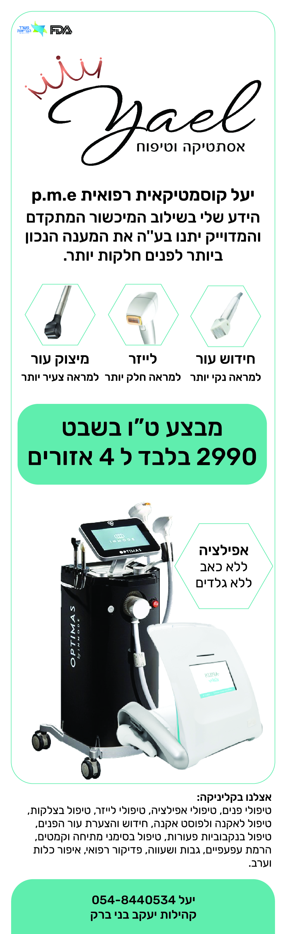 טיפולי פנים, טיפולי אפילציה, טיפולי לייזר, טיפול בצלקות,