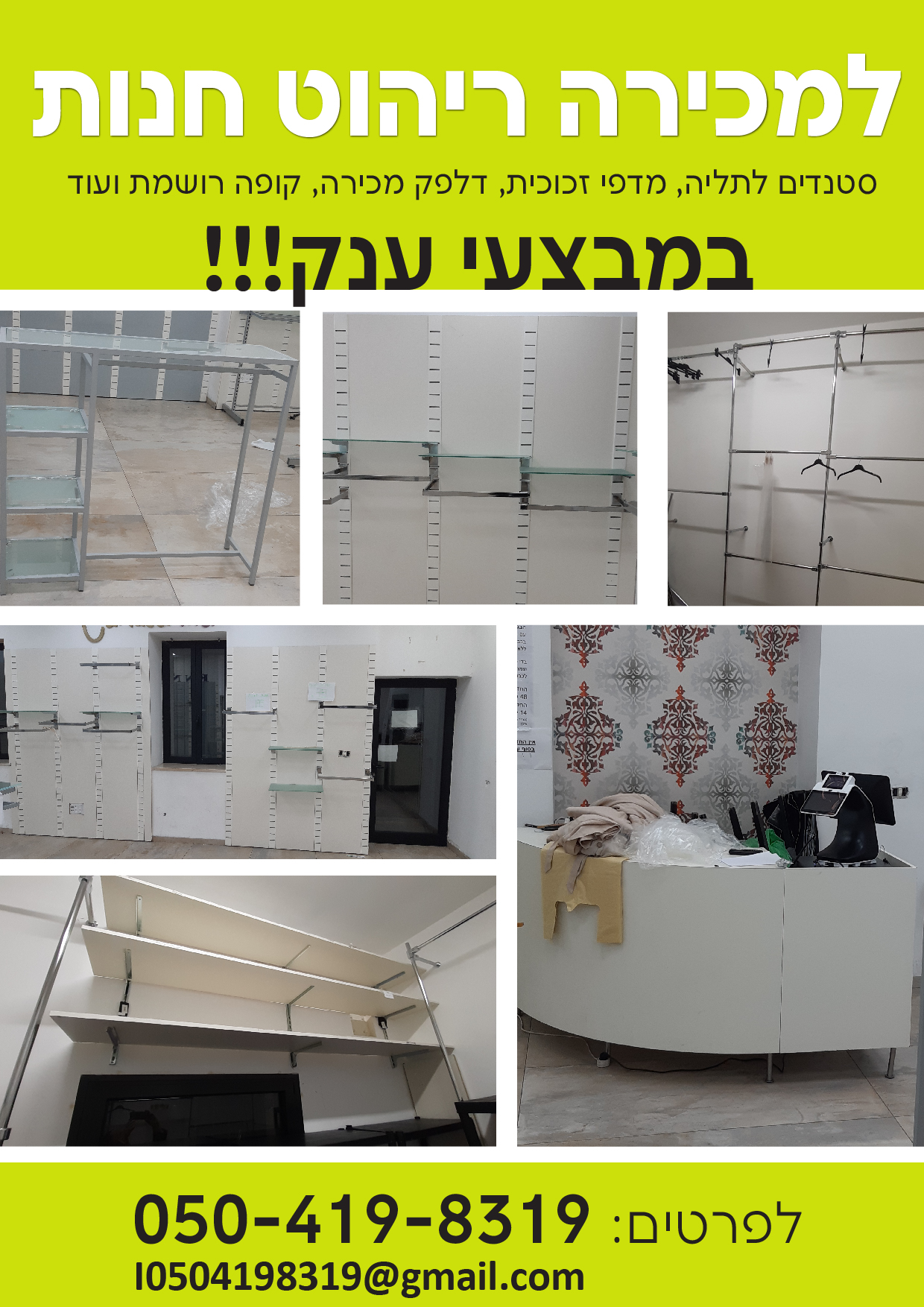 ריהוט חנות בסטייל, למכירה עקב סגירת חנות.